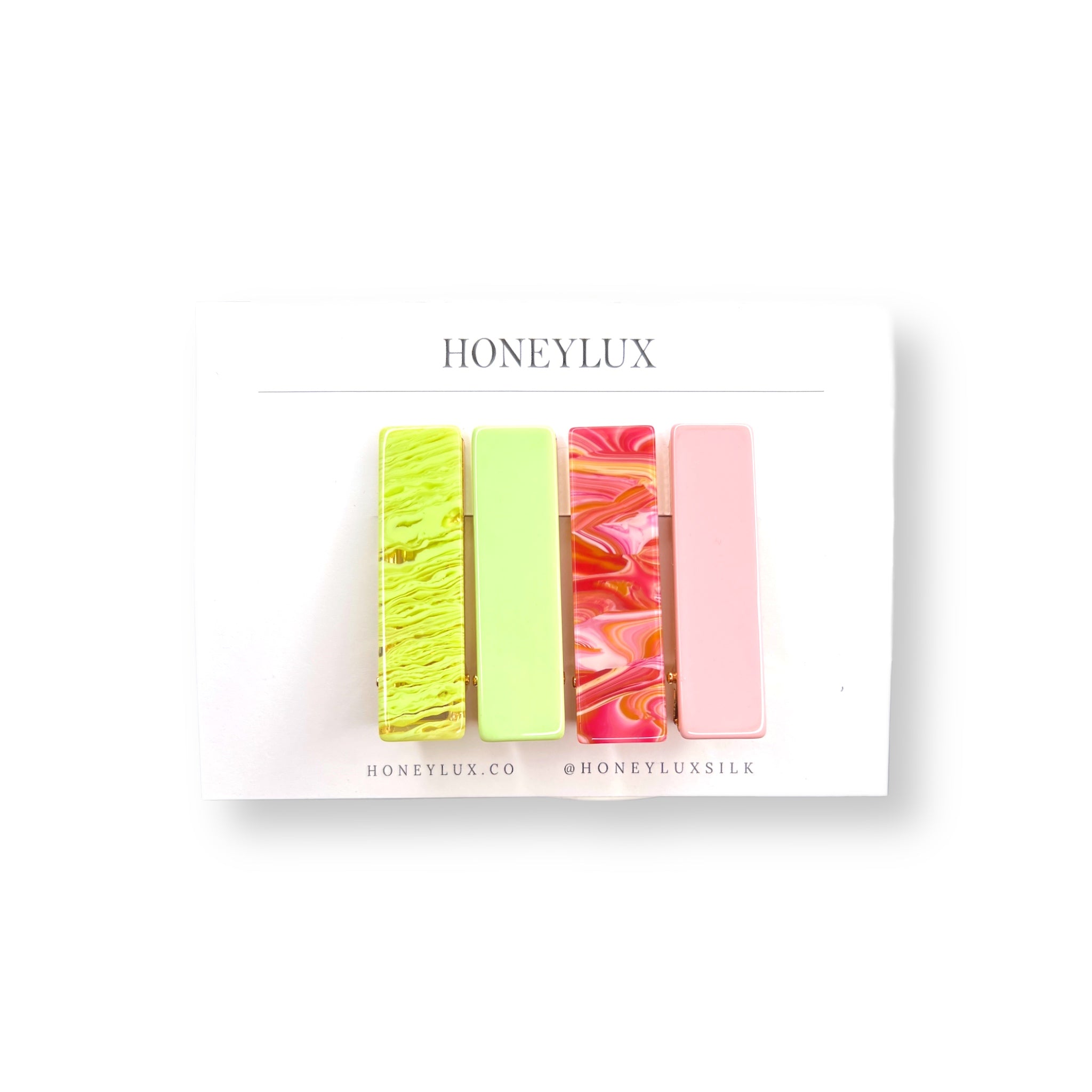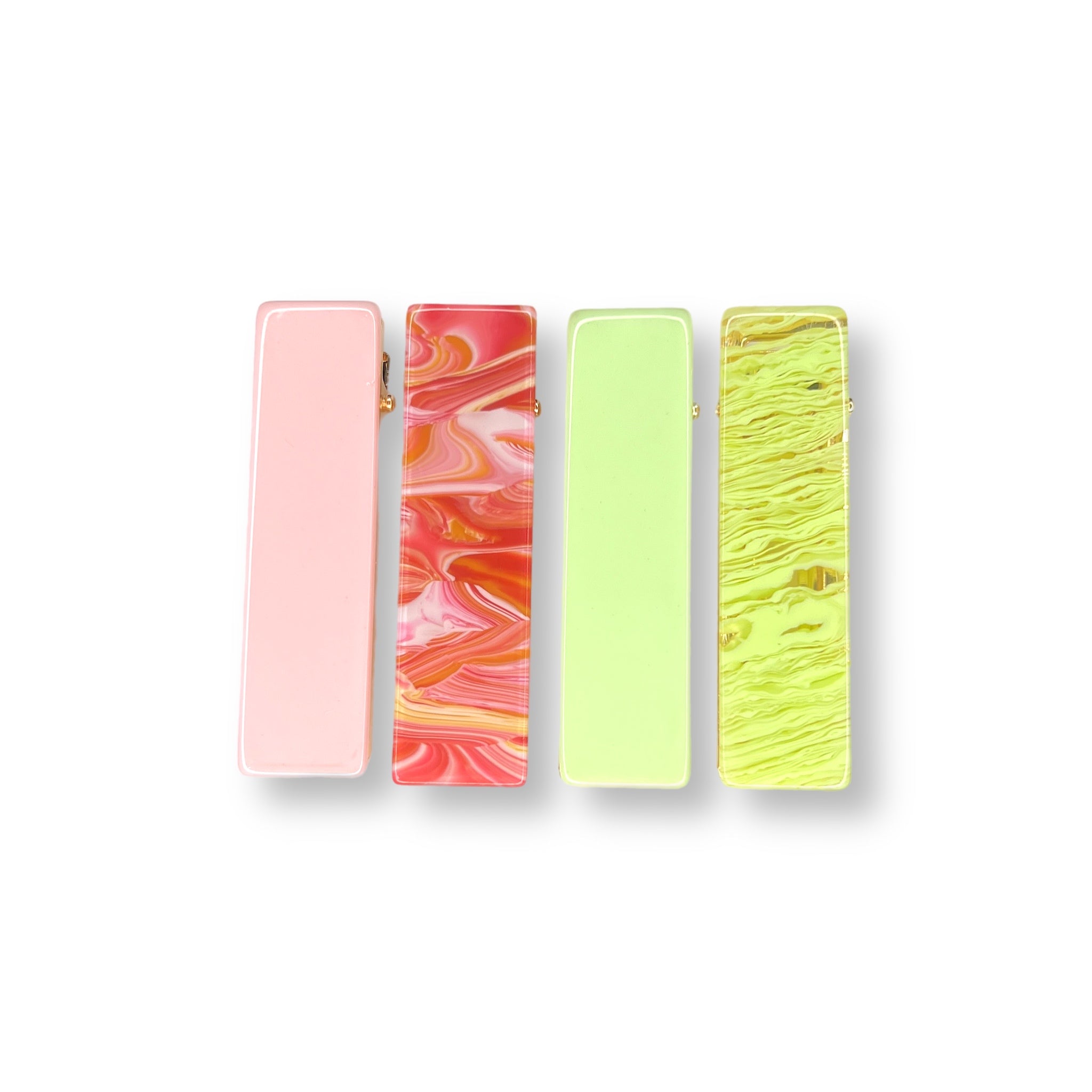 The Barrette Clip Set is crafted from premium cotton and wood pulp acetate, offering a luxurious, eco-friendly alternative to traditional materials. Durable and stylish, these barrettes securely hold hair in place, perfect for styling loose strands, updos, or side-swept looks. With a unique, high-end finish, they add sophistication and sustainable luxury to any hairstyle.