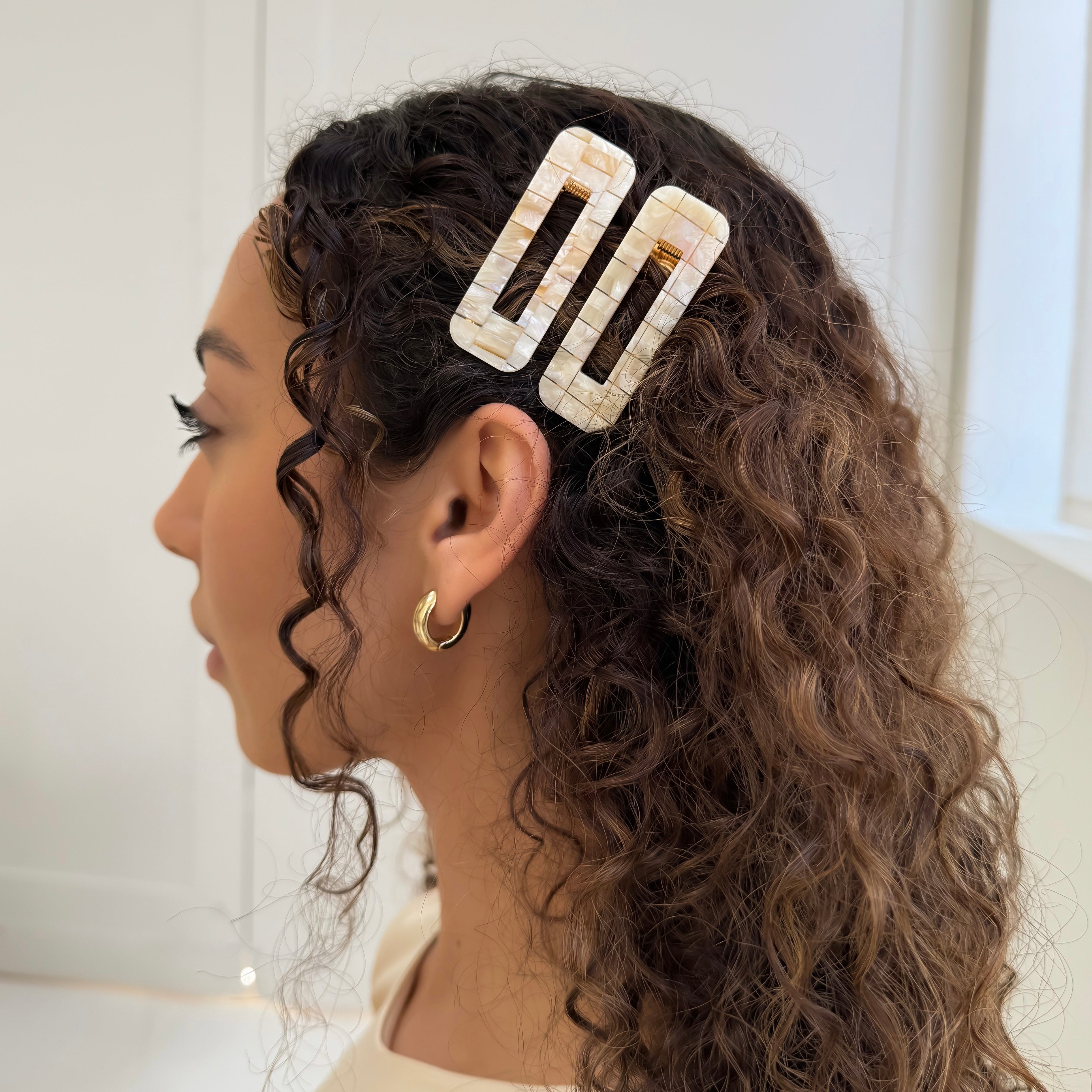 The Barrette Clip Set is crafted from premium cotton and wood pulp acetate, offering a luxurious, eco-friendly alternative to traditional materials. Durable and stylish, these barrettes securely hold hair in place, perfect for styling loose strands, updos, or side-swept looks. With a unique, high-end finish, they add sophistication and sustainable luxury to any hairstyle.