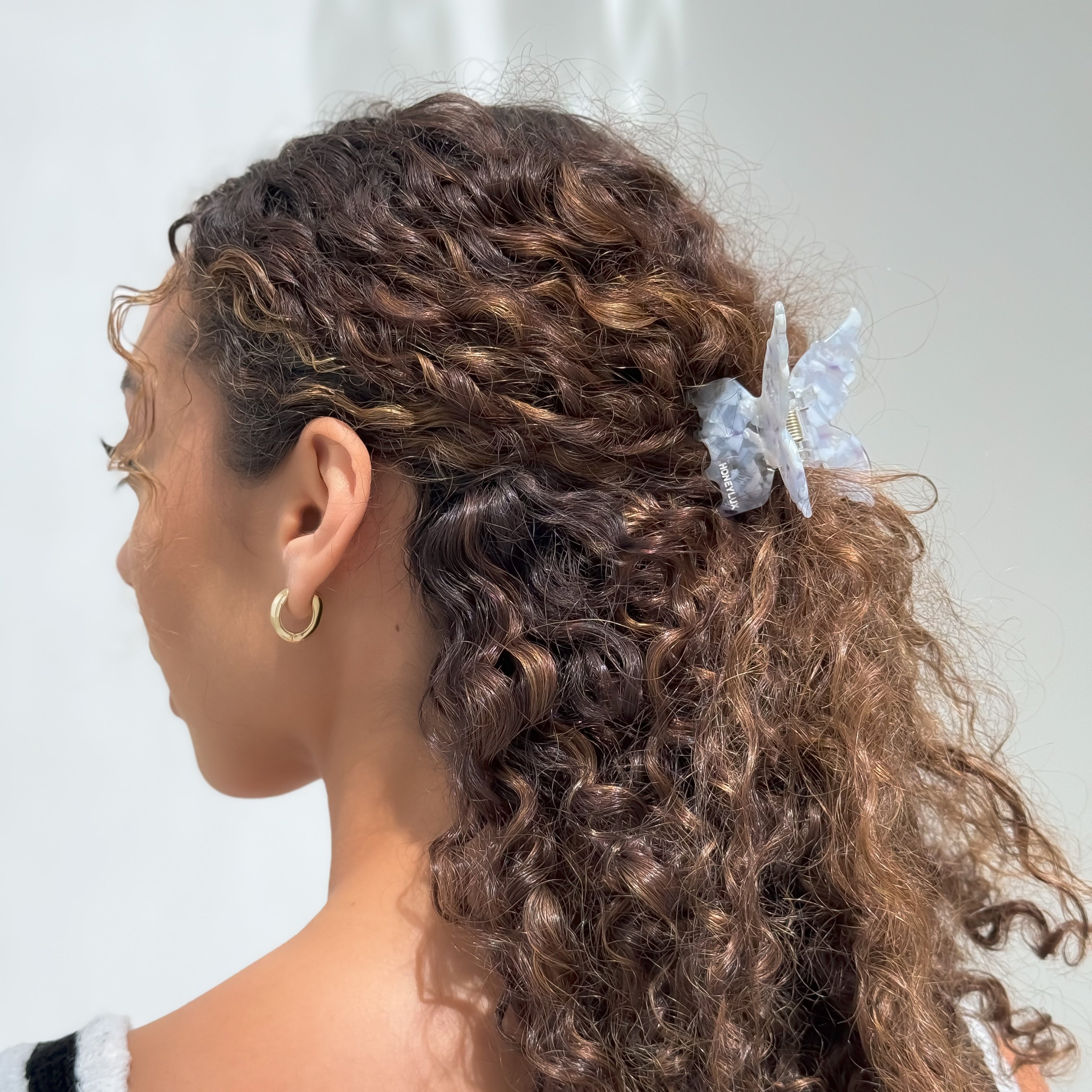 Designed in Toronto, the HL Butterfly Claw is crafted from luxurious cotton & wood pulp acetate and securely holds all hair types, from the thickest curls to the finest, slipperiest strands. This pack of two clips offers versatile styling options, perfect for securing smaller sections or creating unique looks. Engineered for all-day hold, these small-yet-mighty claws combine durability with a refined style, ensuring a secure, all-day grip.