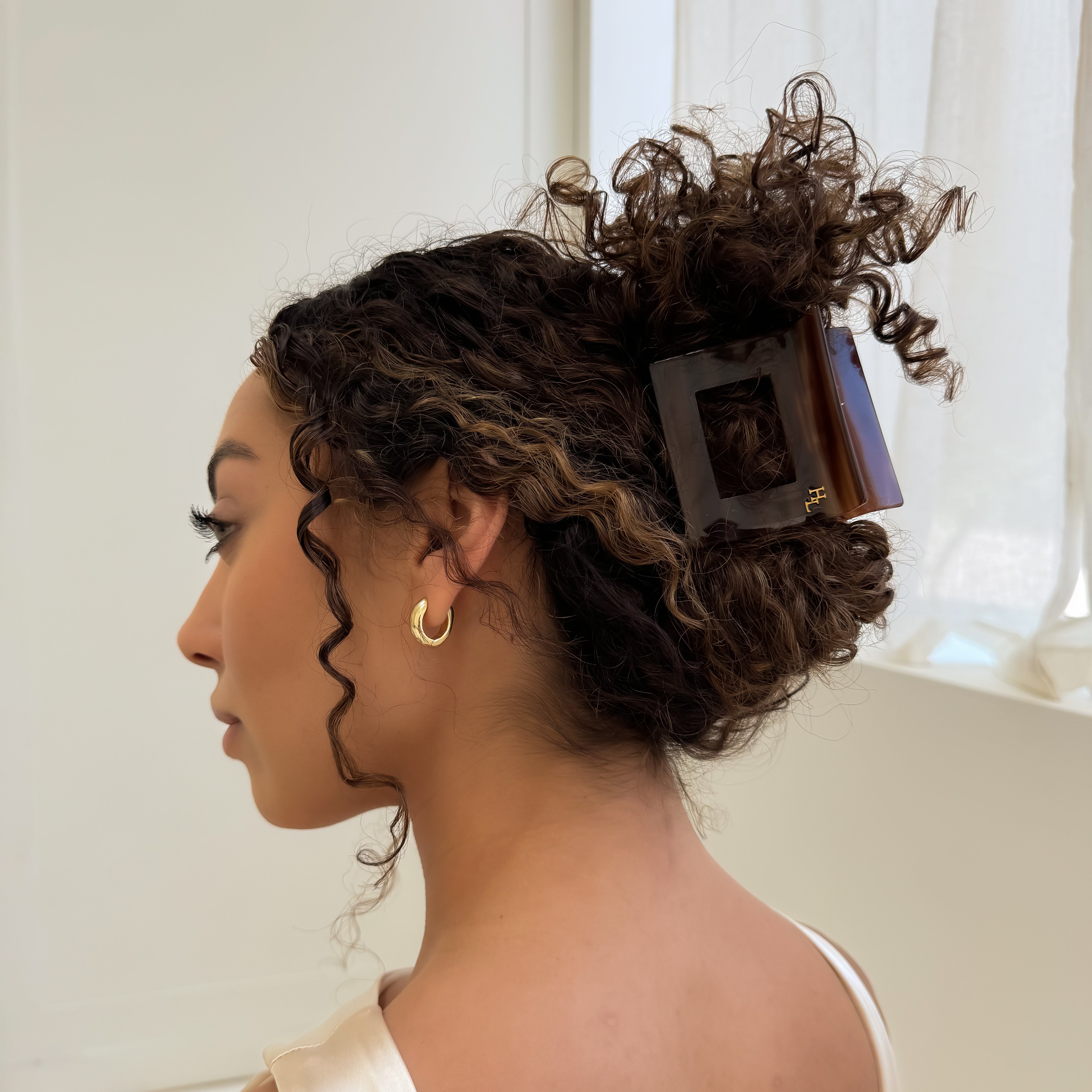 Your most durable claw clip is here! The XL Dolce Claw Clip is designed in Toronto with a modern, rectangular frame, and crafted from sustainable cotton and wood pulp acetate. Its durable, non-slip design ensures a secure hold without damaging or pulling hair. Gentle yet strong, this stylish clip effortlessly keeps hair in place, combining luxury, functionality, and eco-conscious craftsmanship.