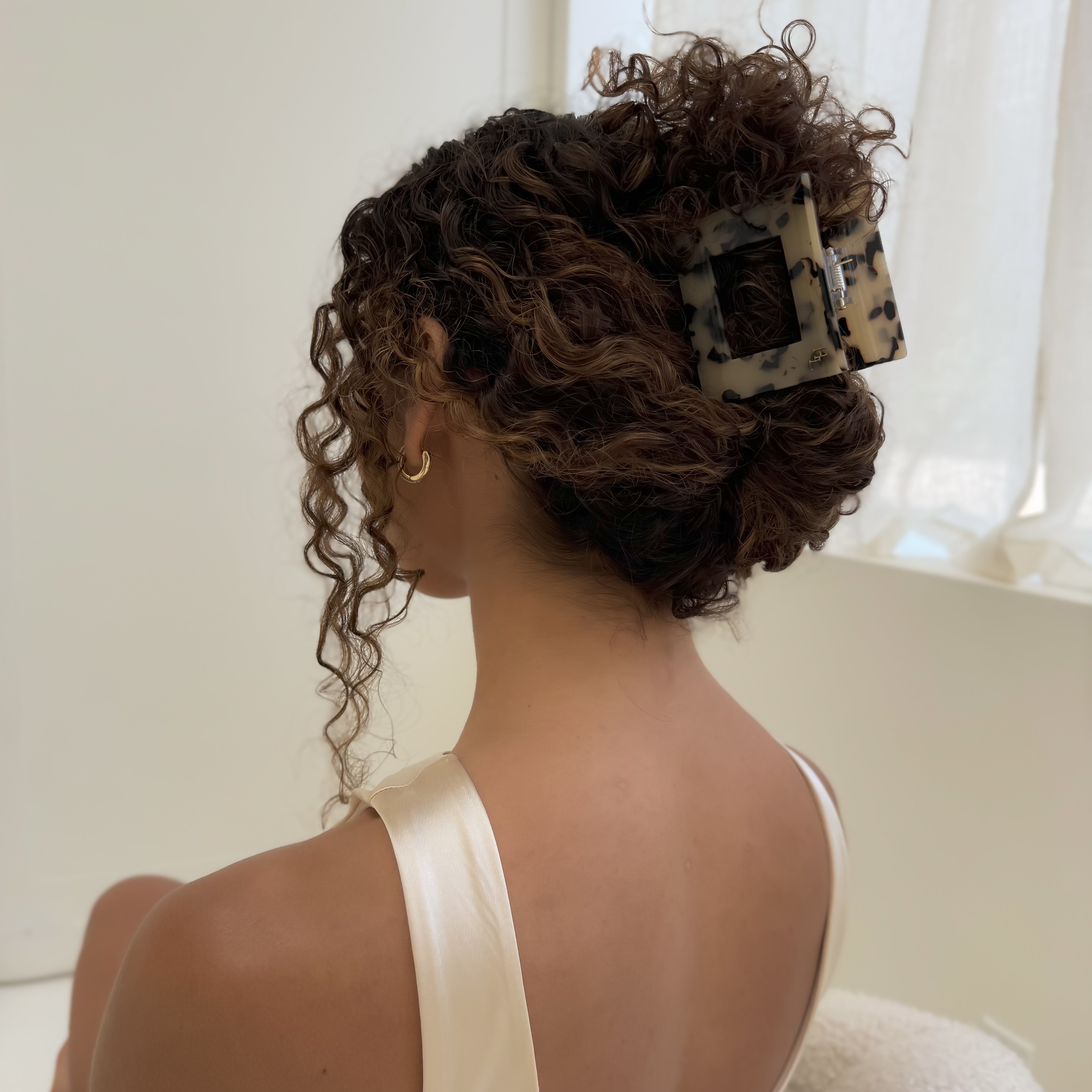 Curly/Thick Hair - XL claw clips are recommended for a full-up hairstyle and both Large & Midi claw clips are recommended for half-up hairstyles.
