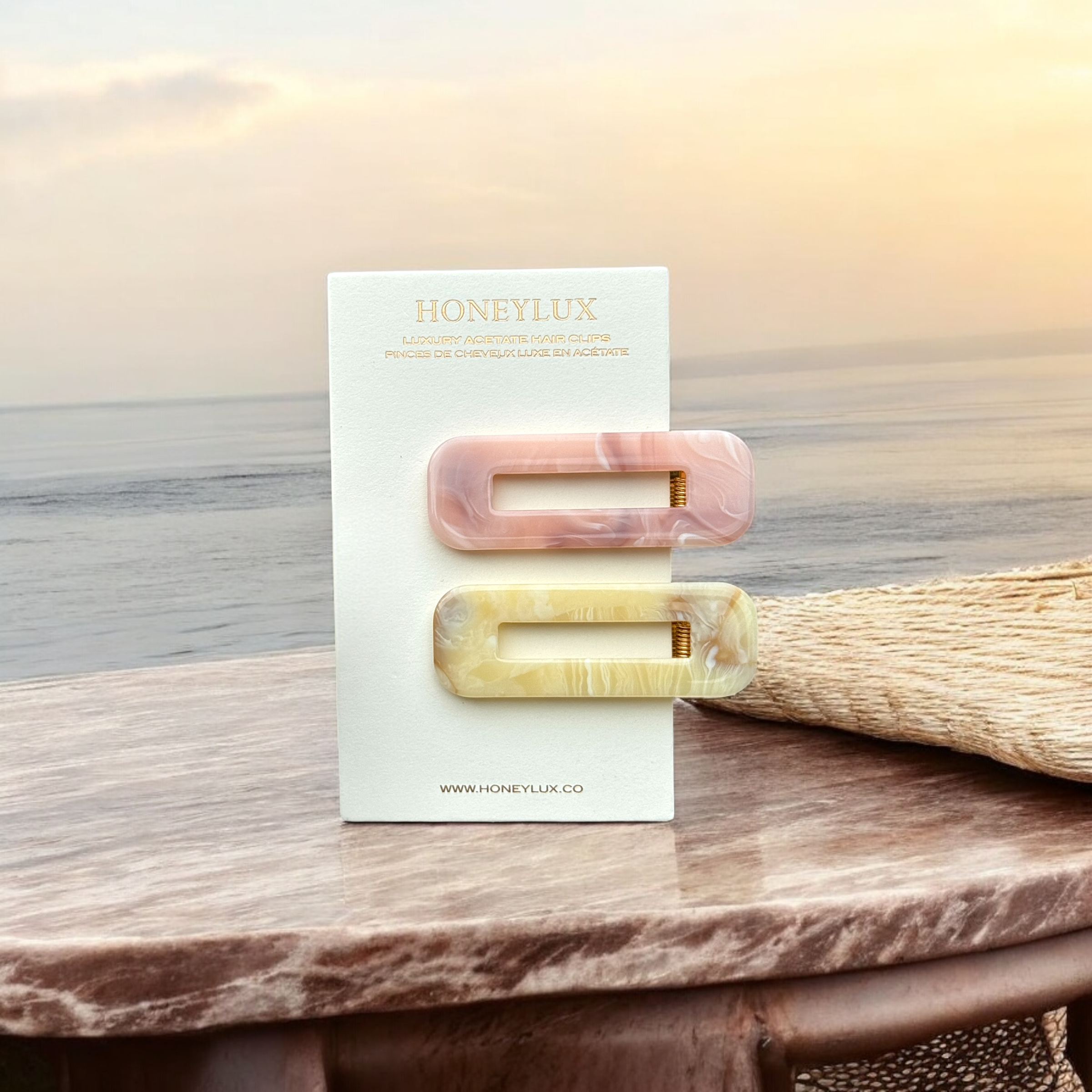 The Barrette Clip Set is crafted from premium cotton and wood pulp acetate, offering a luxurious, eco-friendly alternative to traditional materials. Durable and stylish, these barrettes securely hold hair in place, perfect for styling loose strands, updos, or side-swept looks. With a unique, high-end finish, they add sophistication and sustainable luxury to any hairstyle.