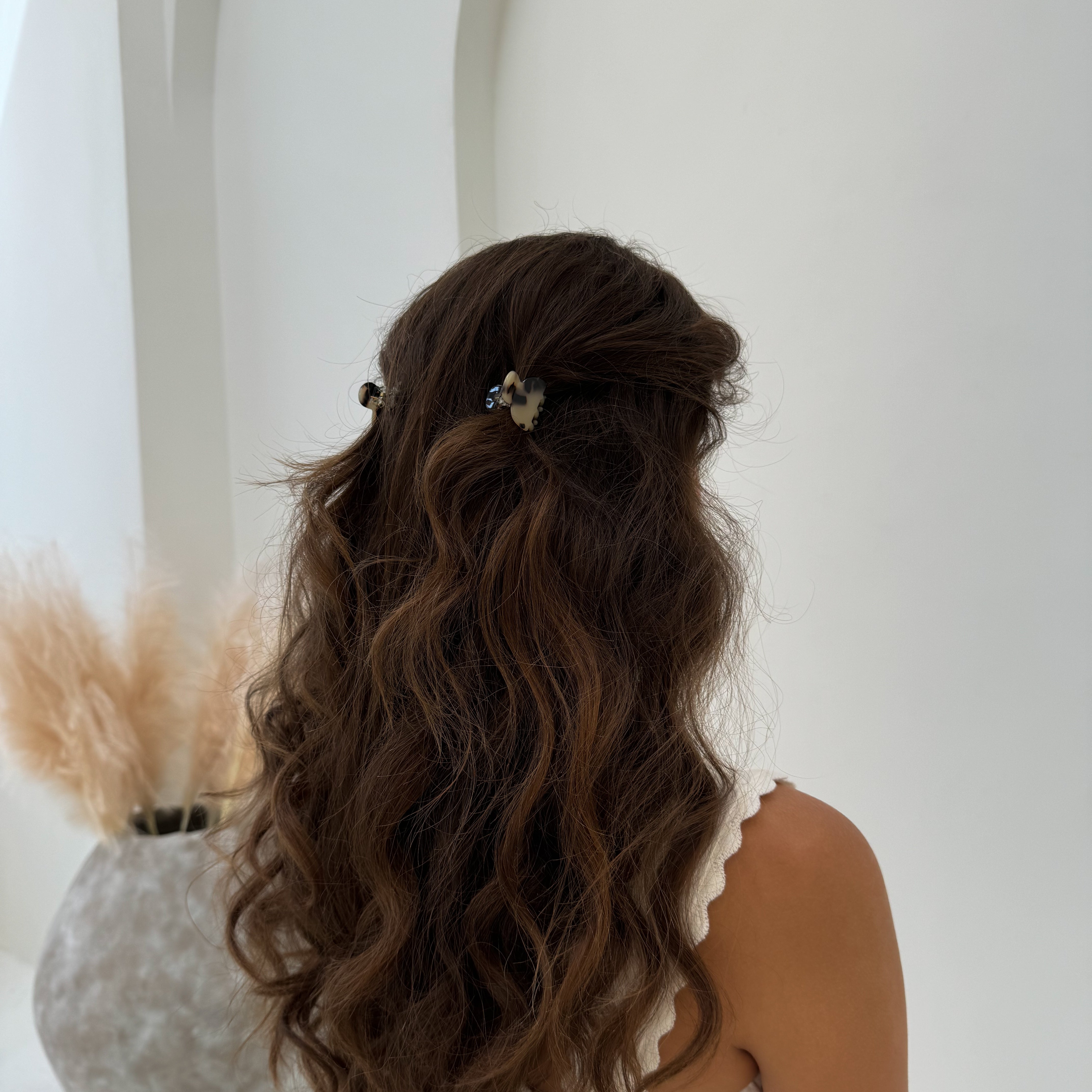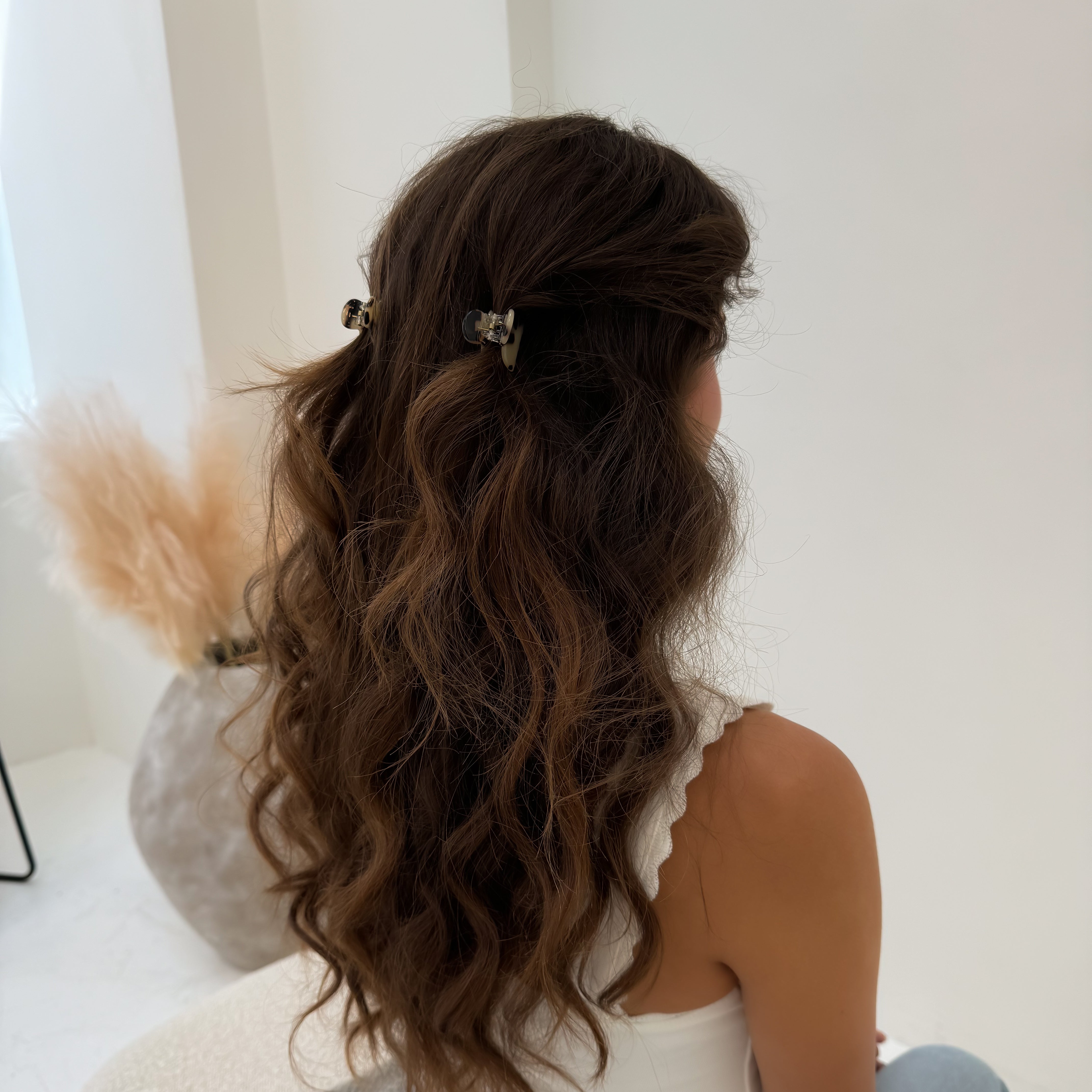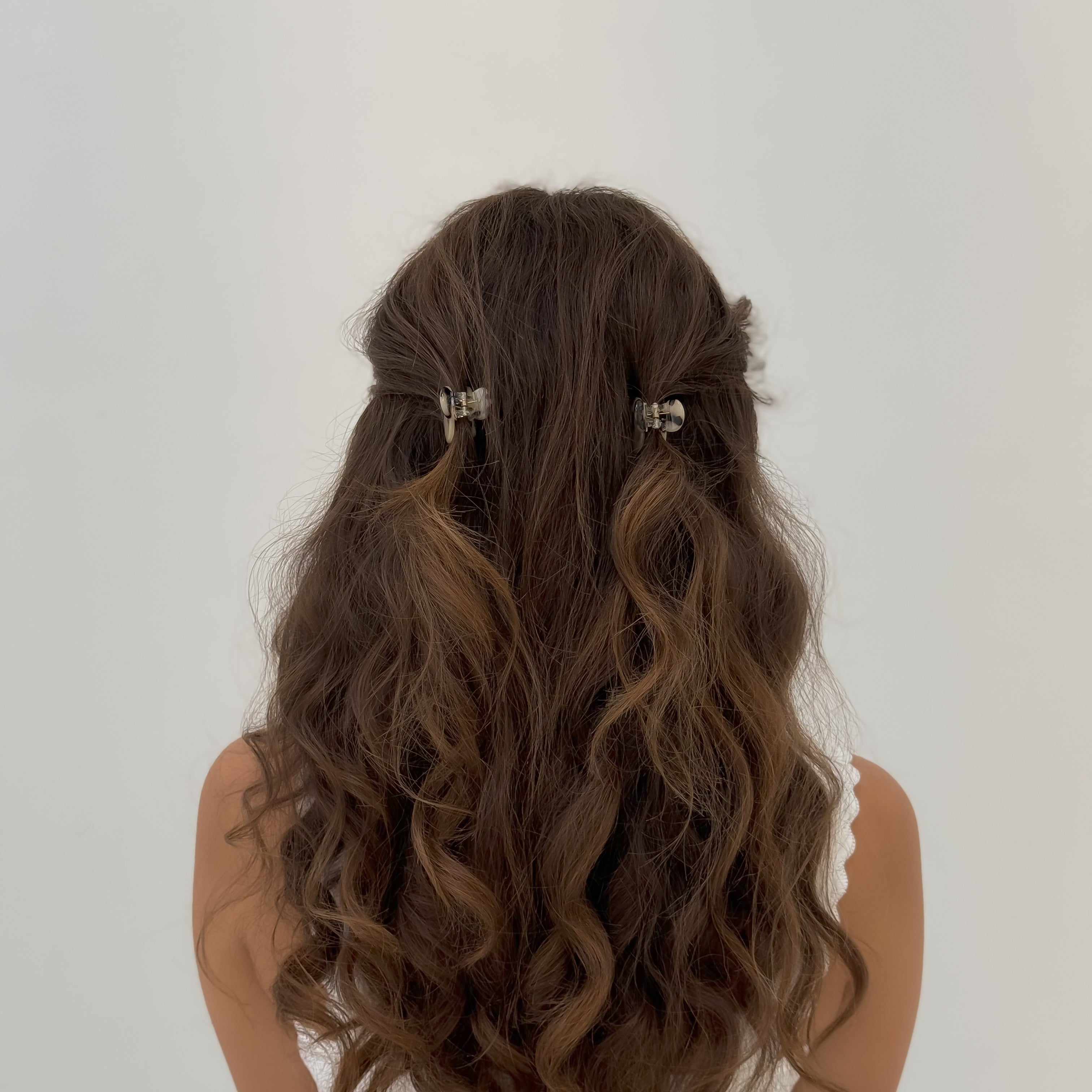 Curly/Thick Hair - XL claw clips are recommended for a full-up hairstyle and both Large & Midi claw clips are recommended for half-up hairstyles.