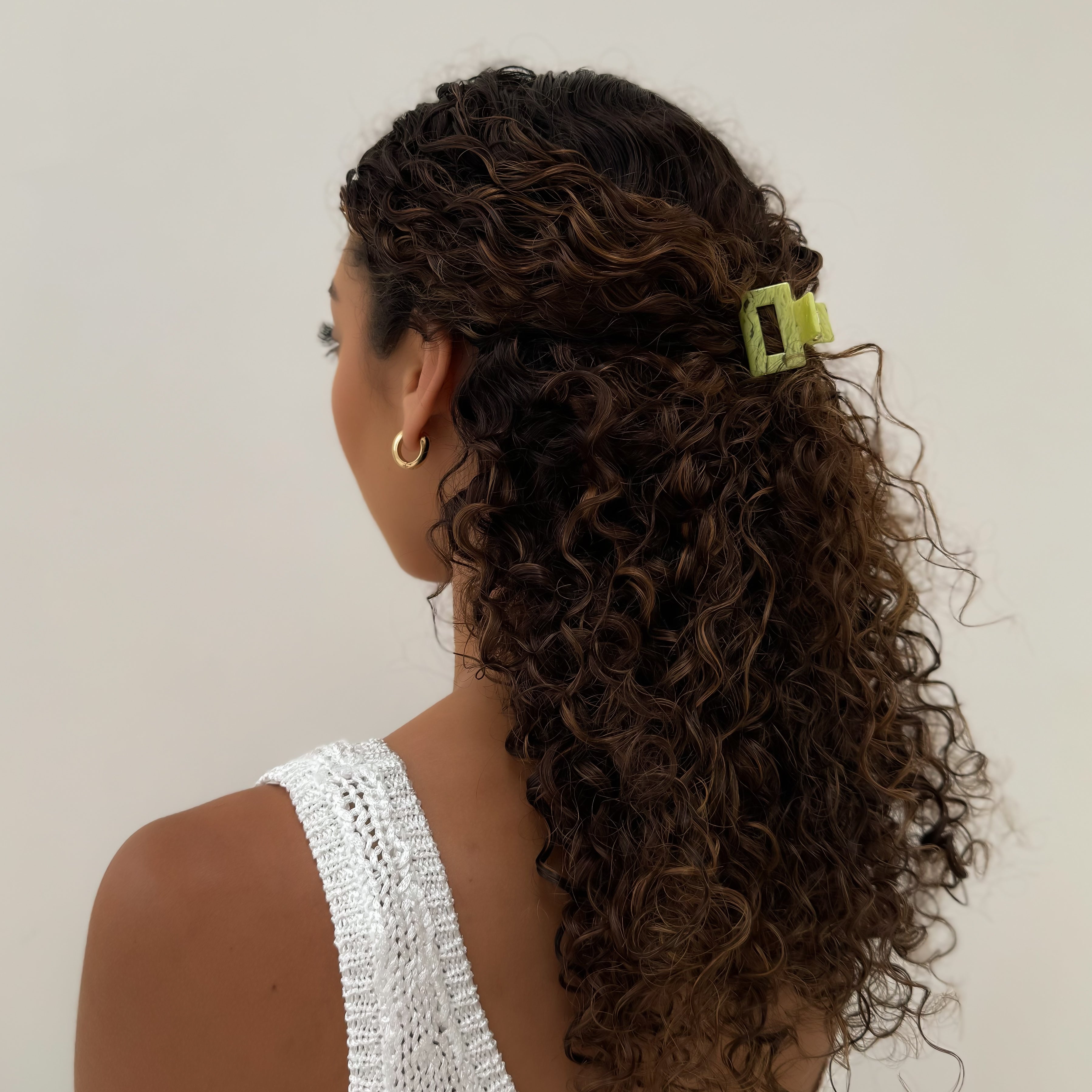 Designed in Toronto, the Mini Square Claw Clip Set is crafted from luxurious cotton & wood pulp acetate and securely holds all hair types, from the thickest curls to the finest, slipperiest strands. This pack of two clips offers versatile styling options, perfect for securing smaller sections or creating unique looks. Engineered for all-day hold, these small-yet-mighty claws combine durability with a refined style, ensuring a secure, all-day grip.