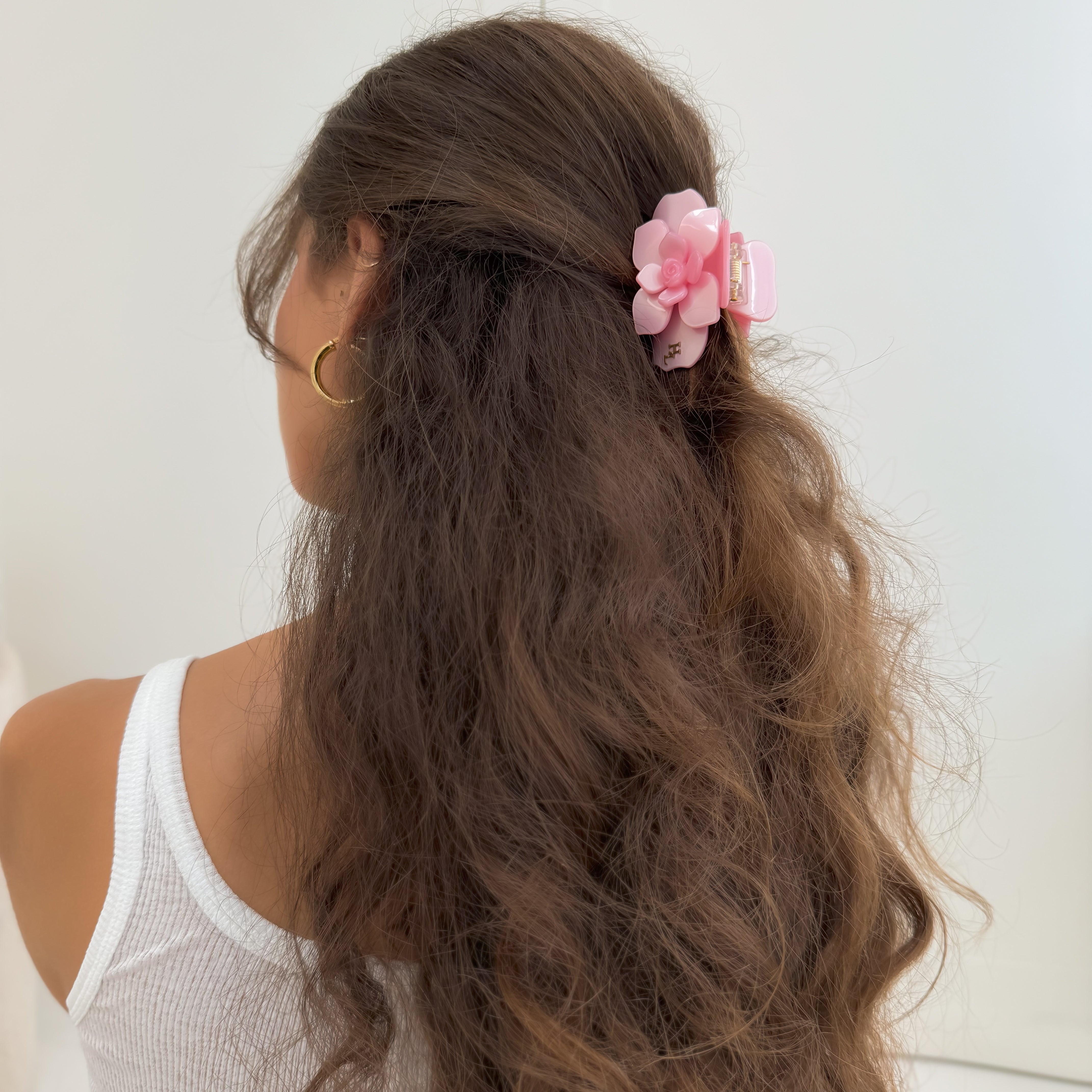 The Flamingo Magnolia Claw made from eco friendly acetate.