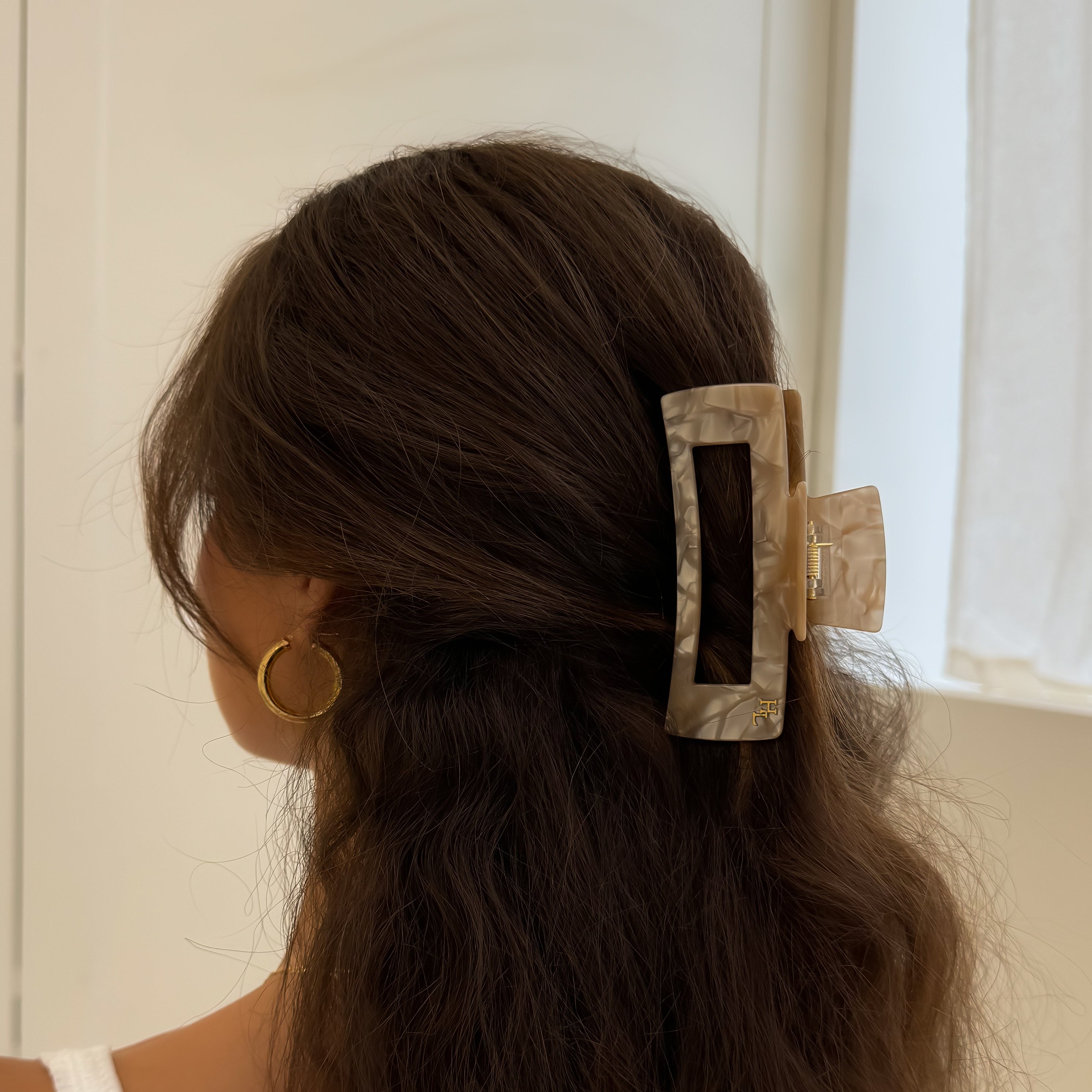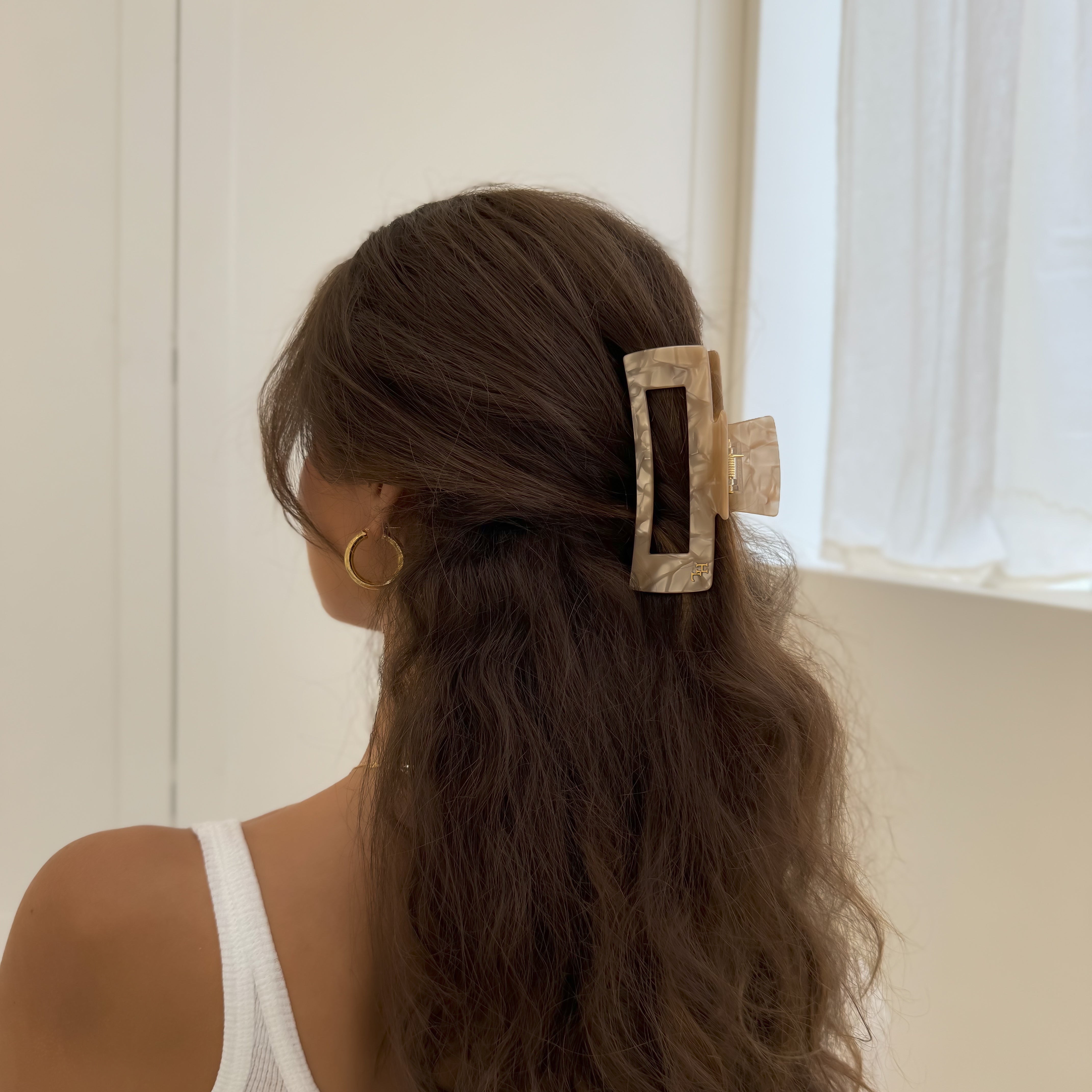 Our main sizes are Mini and Mini Square, Midi, Large, Round and XL. Each clip serves different hair types and hairstyle purposes.