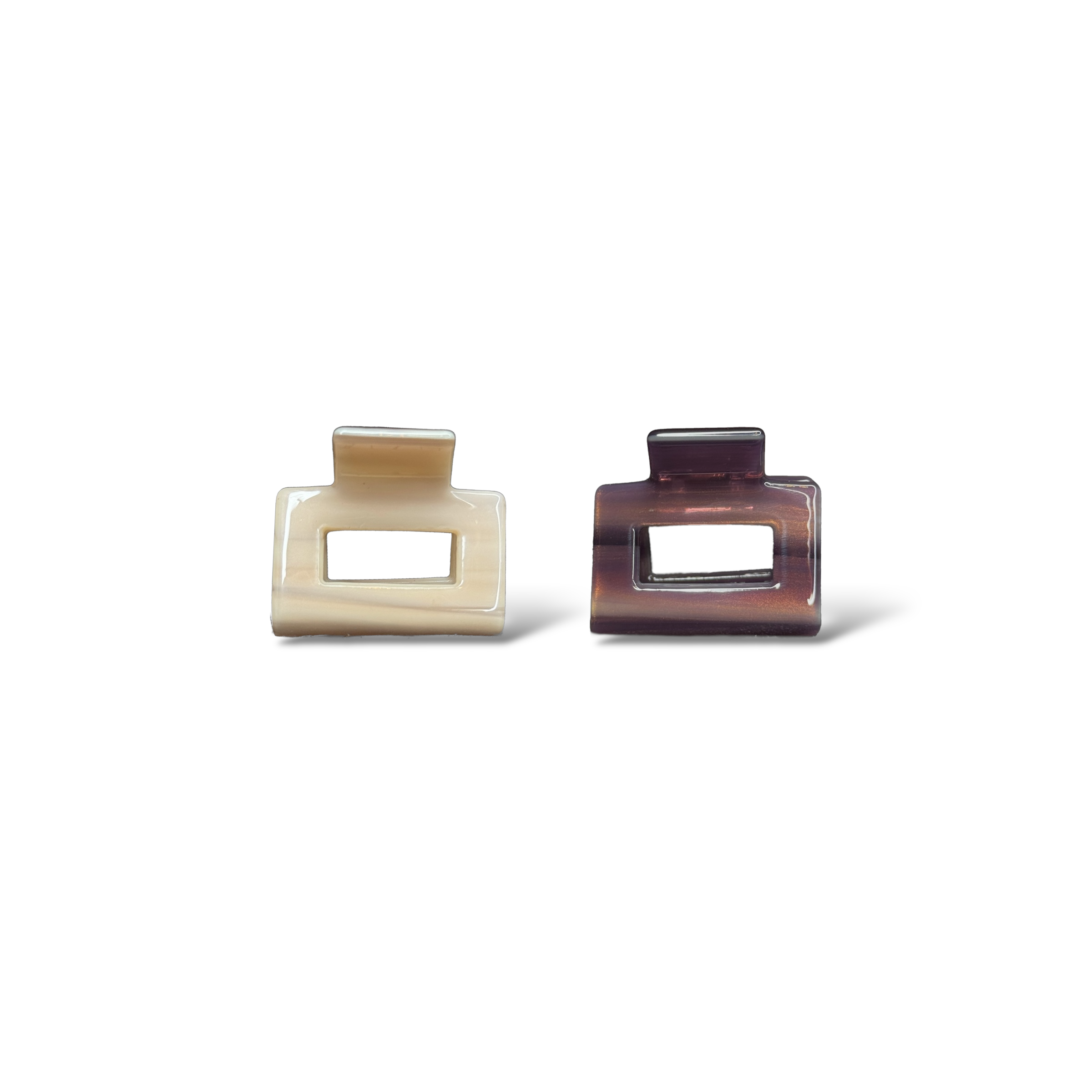 Designed in Toronto, the Mini Square Claw Clip Set is crafted from luxurious cotton & wood pulp acetate and securely holds all hair types, from the thickest curls to the finest, slipperiest strands. This pack of two clips offers versatile styling options, perfect for securing smaller sections or creating unique looks. Engineered for all-day hold, these small-yet-mighty claws combine durability with a refined style, ensuring a secure, all-day grip.