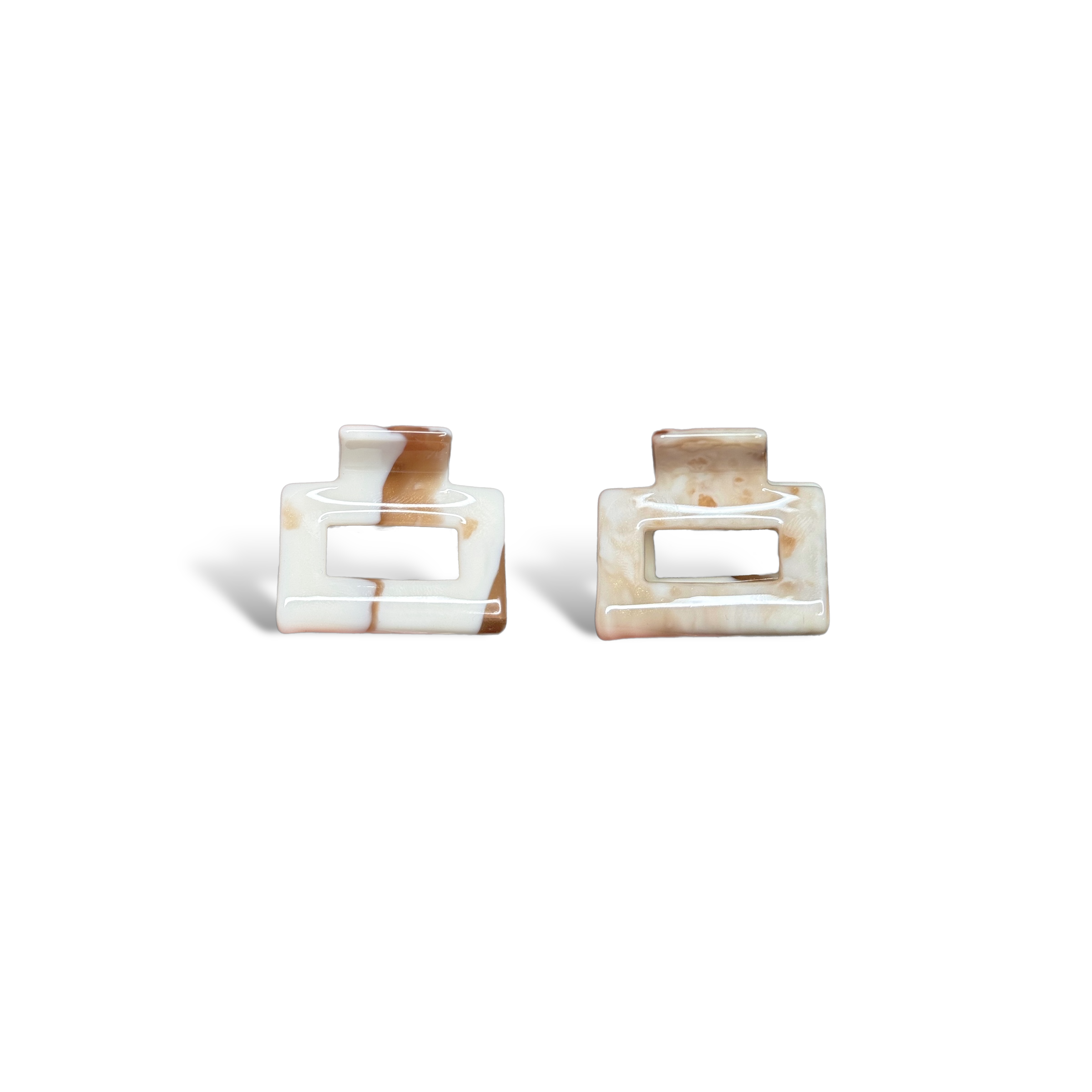 Designed in Toronto, the Mini Square Claw Clip Set is crafted from luxurious cotton & wood pulp acetate and securely holds all hair types, from the thickest curls to the finest, slipperiest strands. This pack of two clips offers versatile styling options, perfect for securing smaller sections or creating unique looks. Engineered for all-day hold, these small-yet-mighty claws combine durability with a refined style, ensuring a secure, all-day grip.