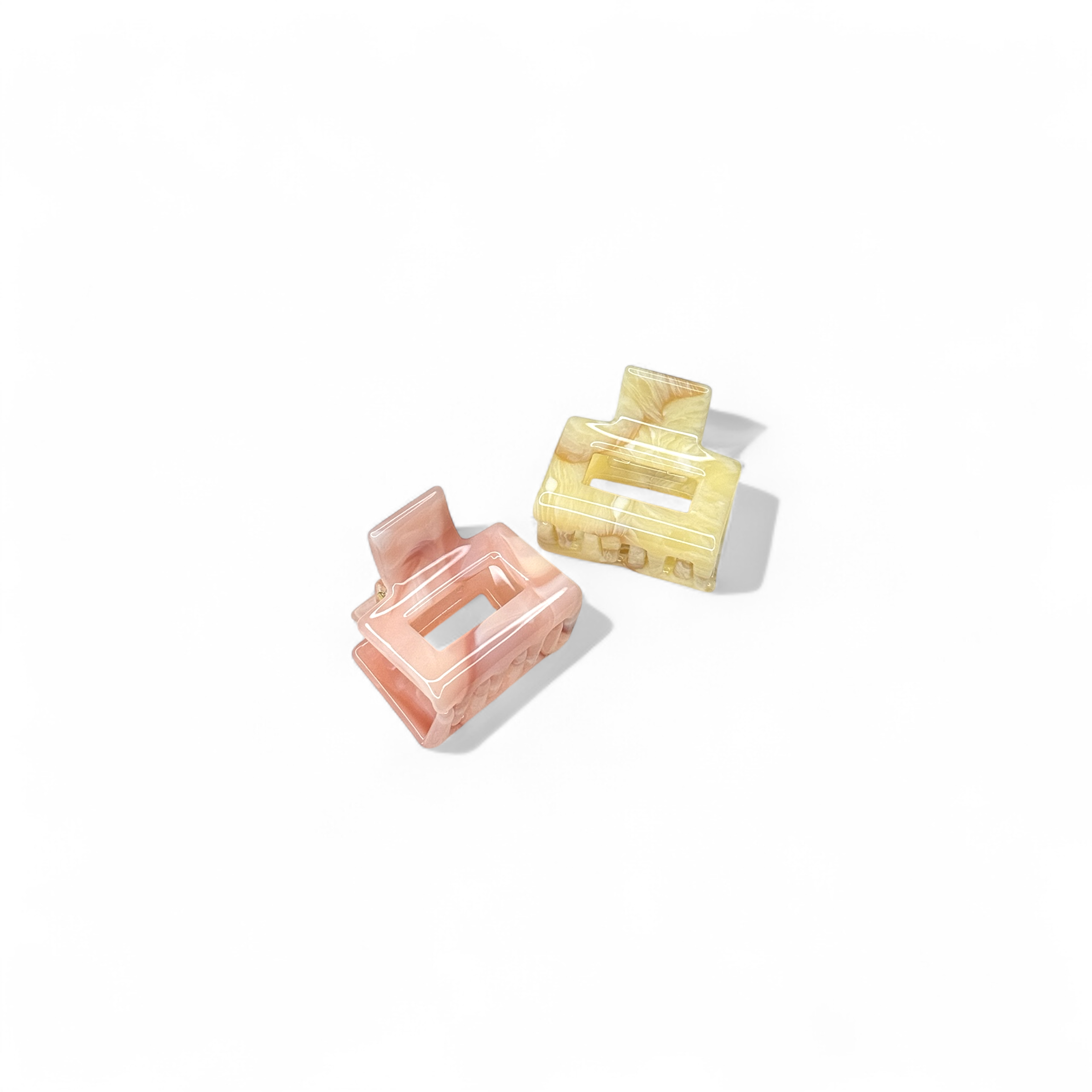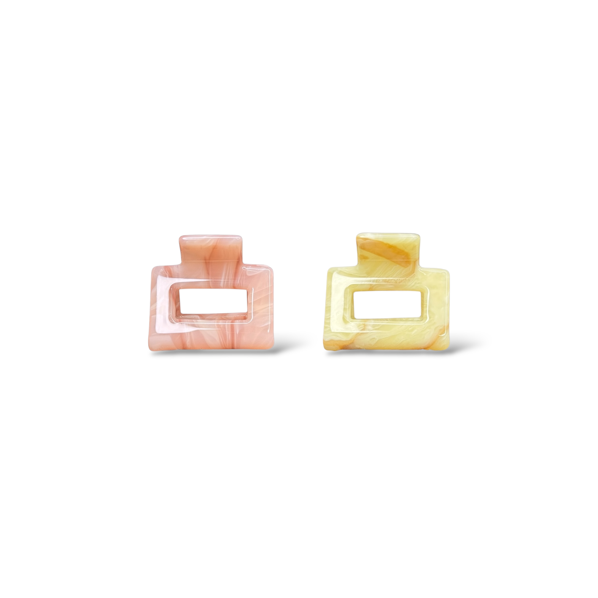 Designed in Toronto, the Mini Square Claw Clip Set is crafted from luxurious cotton & wood pulp acetate and securely holds all hair types, from the thickest curls to the finest, slipperiest strands. This pack of two clips offers versatile styling options, perfect for securing smaller sections or creating unique looks. Engineered for all-day hold, these small-yet-mighty claws combine durability with a refined style, ensuring a secure, all-day grip.