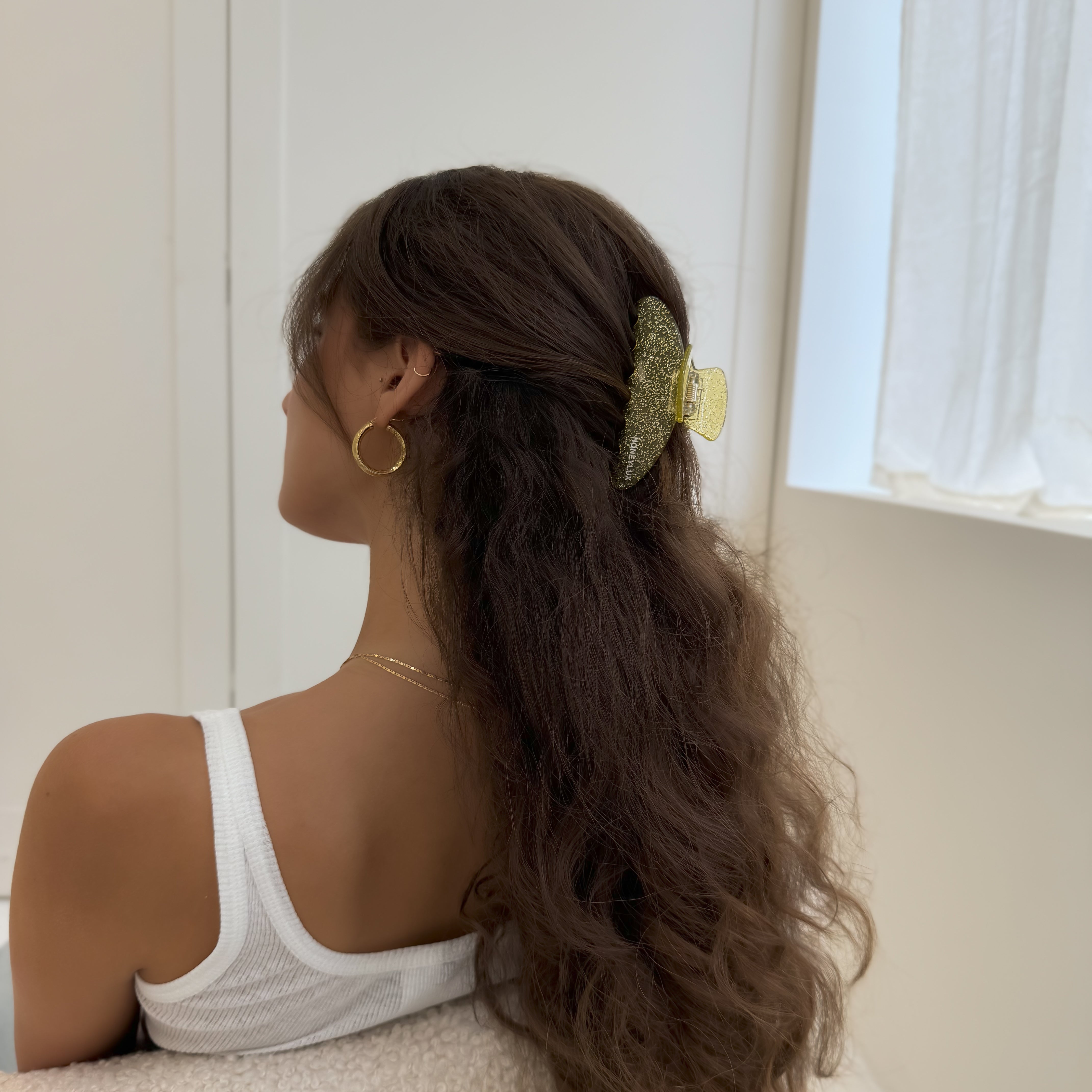 Curly/Thick Hair - XL claw clips are recommended for a full-up hairstyle and both Large & Midi claw clips are recommended for half-up hairstyles.