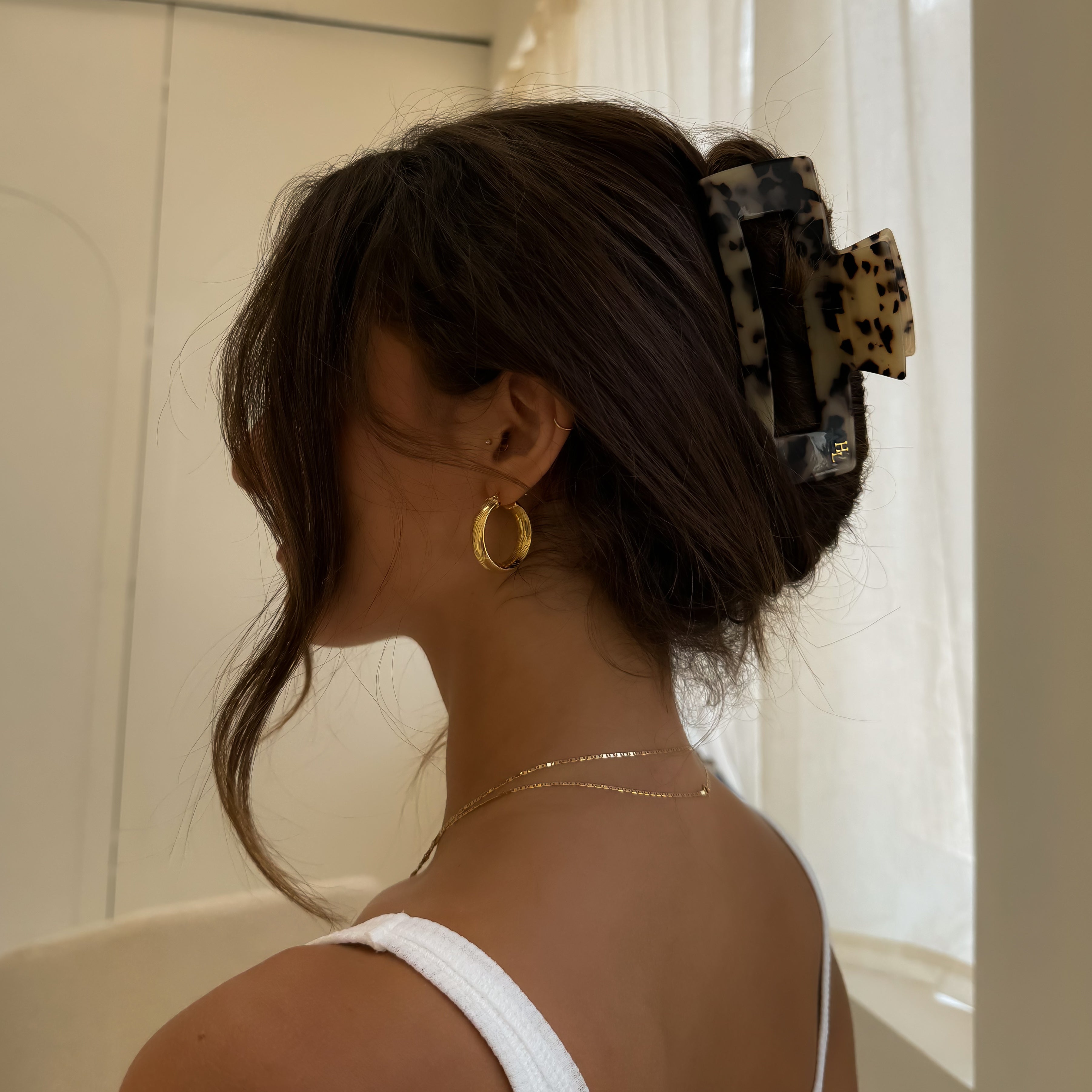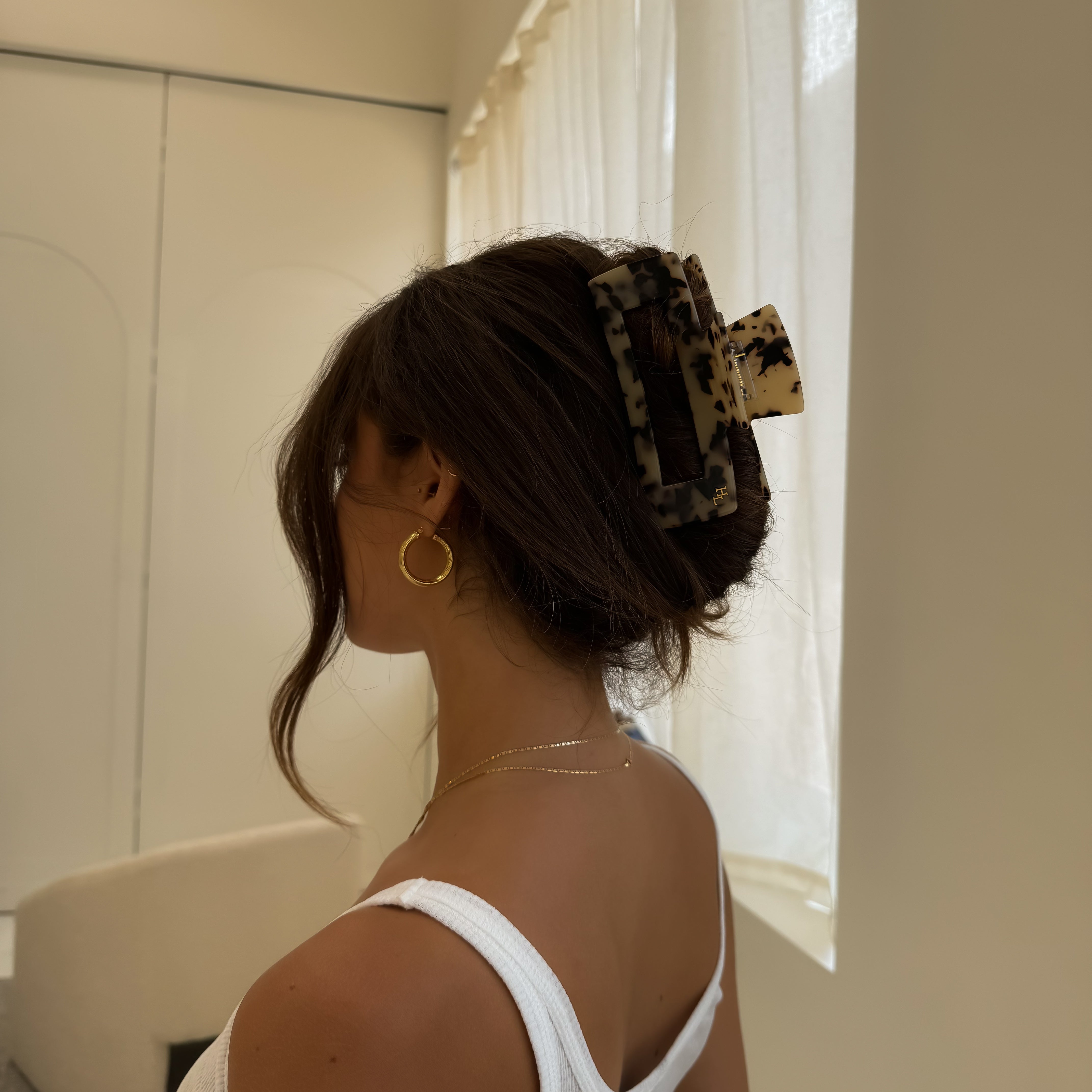 Your most durable claw clip is here! The XL Claw Clip is designed in Toronto and crafted from sustainable cotton and wood pulp acetate. Its durable, non-slip design ensures a secure hold without damaging or pulling hair. Gentle yet strong, this stylish clip effortlessly keeps hair in place, combining luxury, functionality, and eco-conscious craftsmanship.