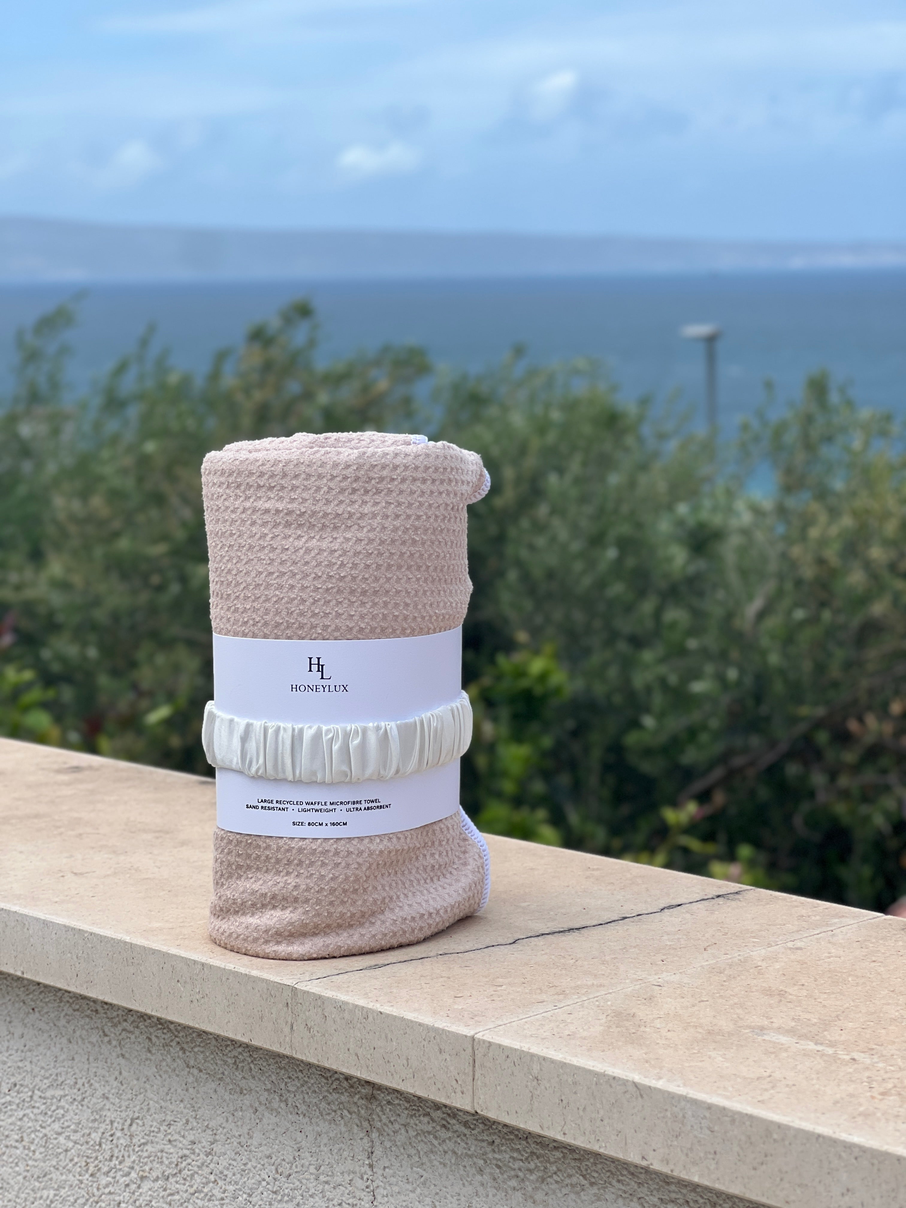 Our seaside Collection large waffle towels are here, and they make the perfect beach or bath towel! Luxuriously embroidered, extra soft and light weight.. these will make you feel pampered wherever you go.