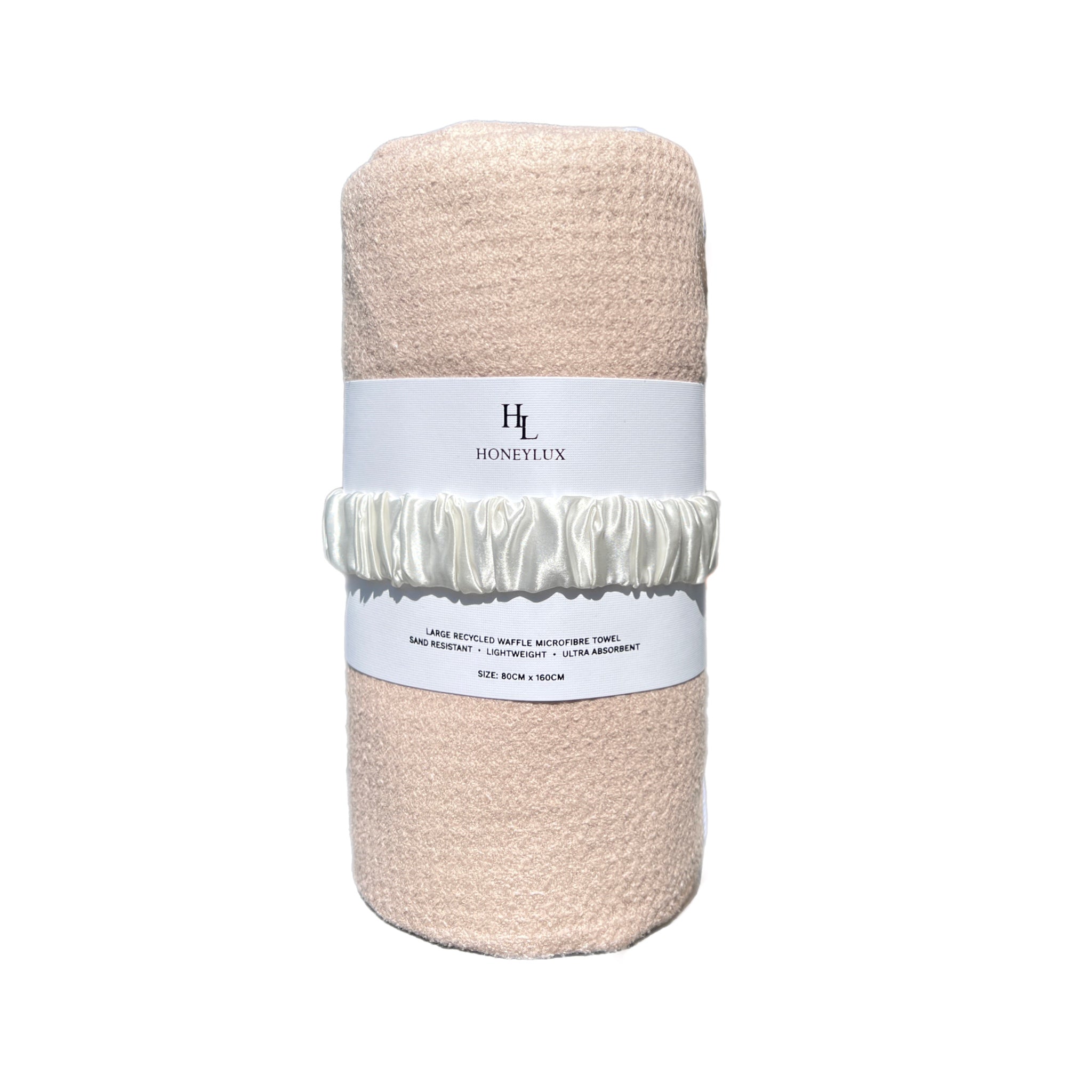 We’re proud to maintain our sustainability standards and use recycled microfibre. Each towel comes with a luxury silk band that can be used for travel or your hair!