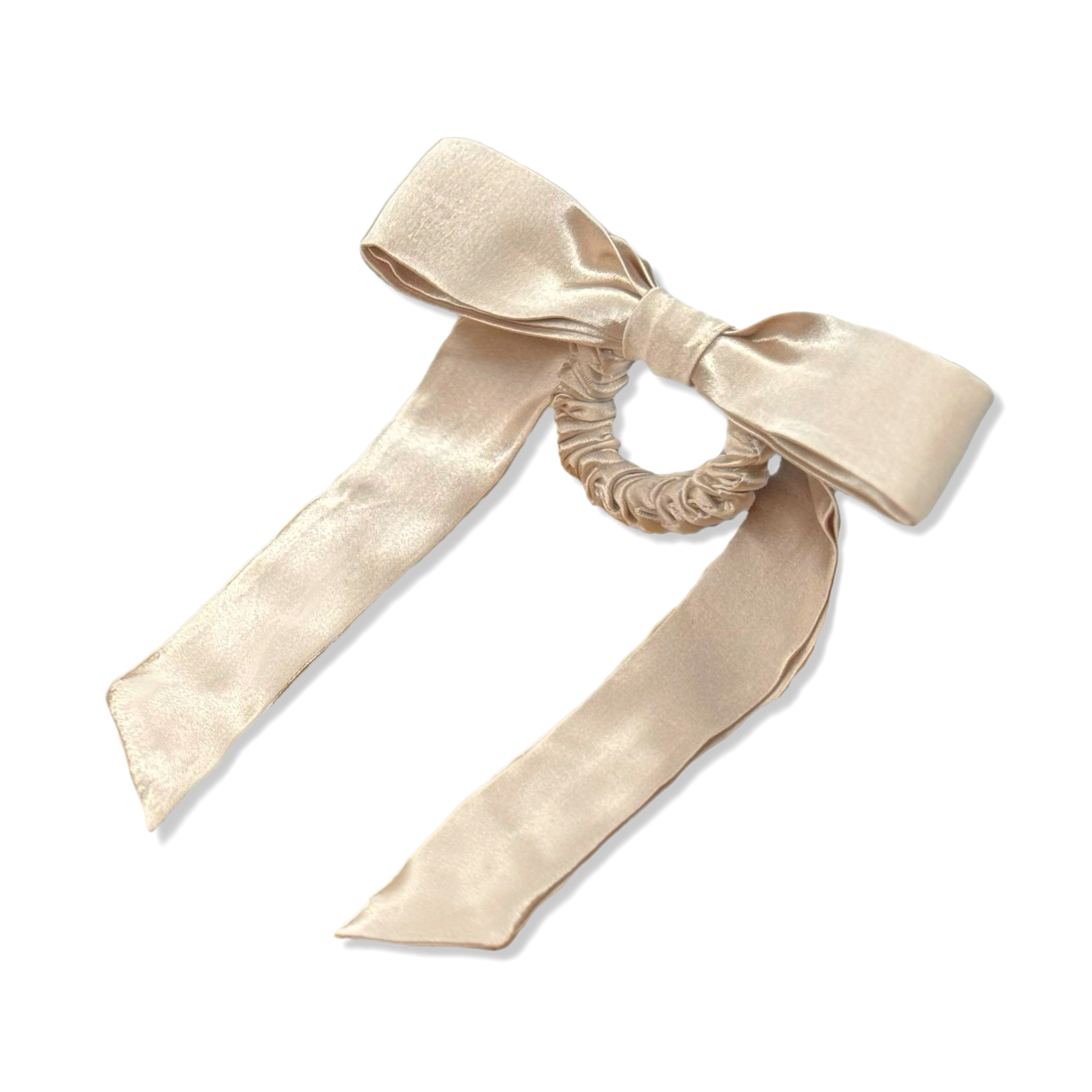 Mulberry Silk Skinny Bow Scrunchie - Champagne