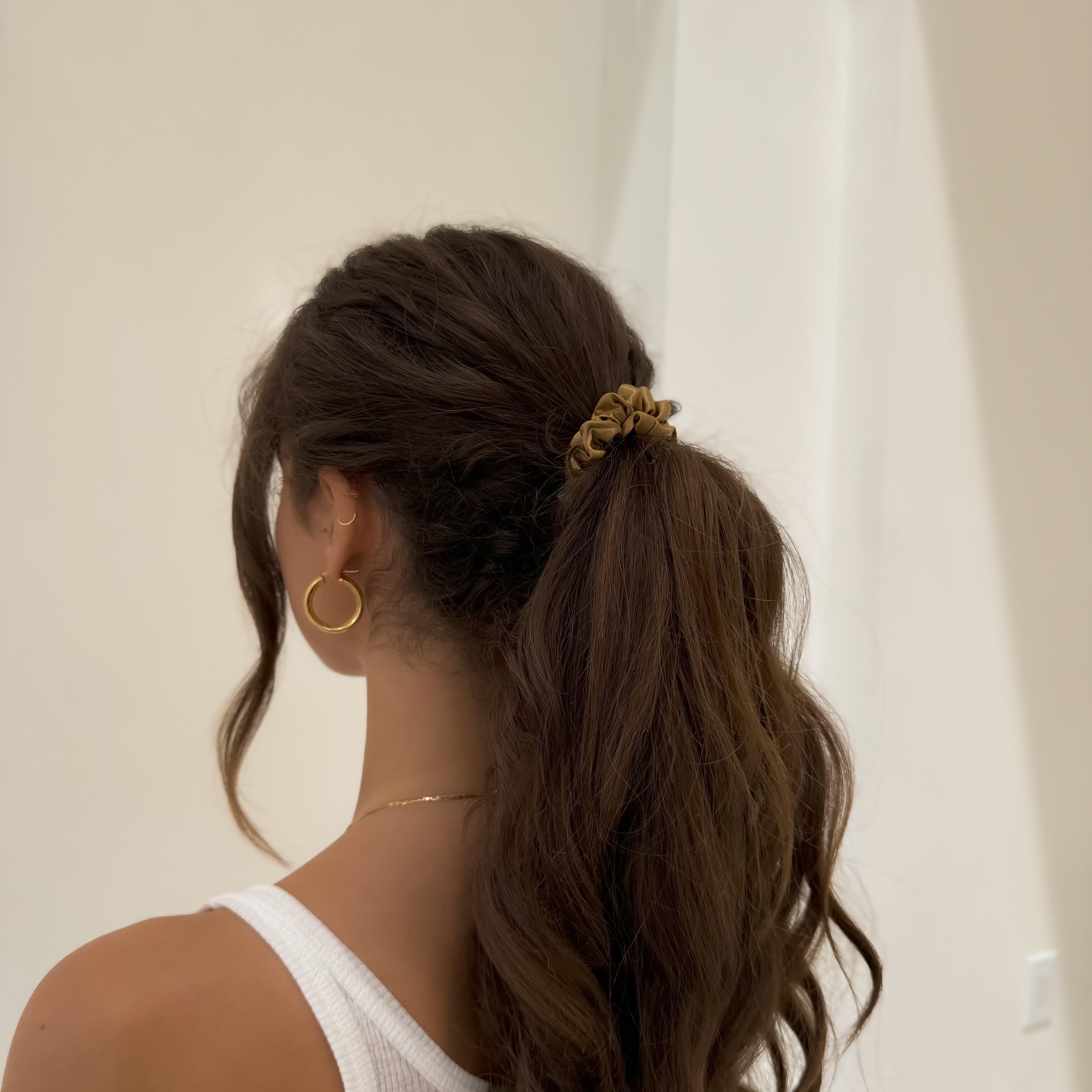 Indulge in timeless luxury with our Pure Silk Scrunchie, made from 100% organic mulberry silk. Thicker and more durable than regular silk, it offers a gentle, non-slip hold for all hair types, from fine strands to thick, textured hair. The premium durable elastic ensures a secure fit without easily stretching out, while the anti-breakage and anti-frizz properties of real silk protect your hair, preventing creasing, thinning, and pony-related headaches. Elevate your haircare routine with this elegant, long-lasting accessory.