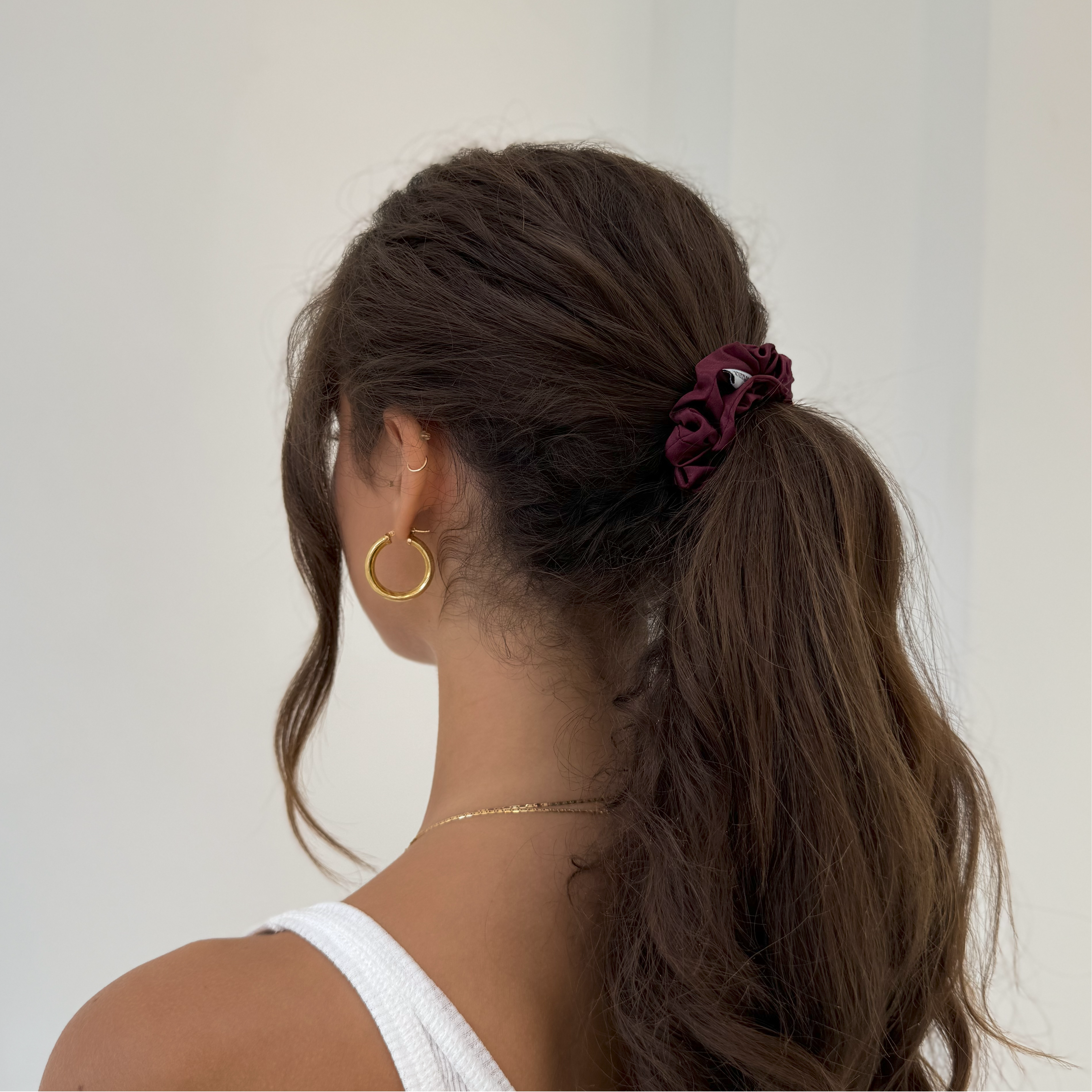 Indulge in timeless luxury with our Pure Silk Scrunchie, made from 100% organic mulberry silk. Thicker and more durable than regular silk, it offers a gentle, non-slip hold for all hair types, from fine strands to thick, textured hair. The premium durable elastic ensures a secure fit without easily stretching out, while the anti-breakage and anti-frizz properties of real silk protect your hair, preventing creasing, thinning, and pony-related headaches. Elevate your haircare routine with this elegant, long-lasting accessory.