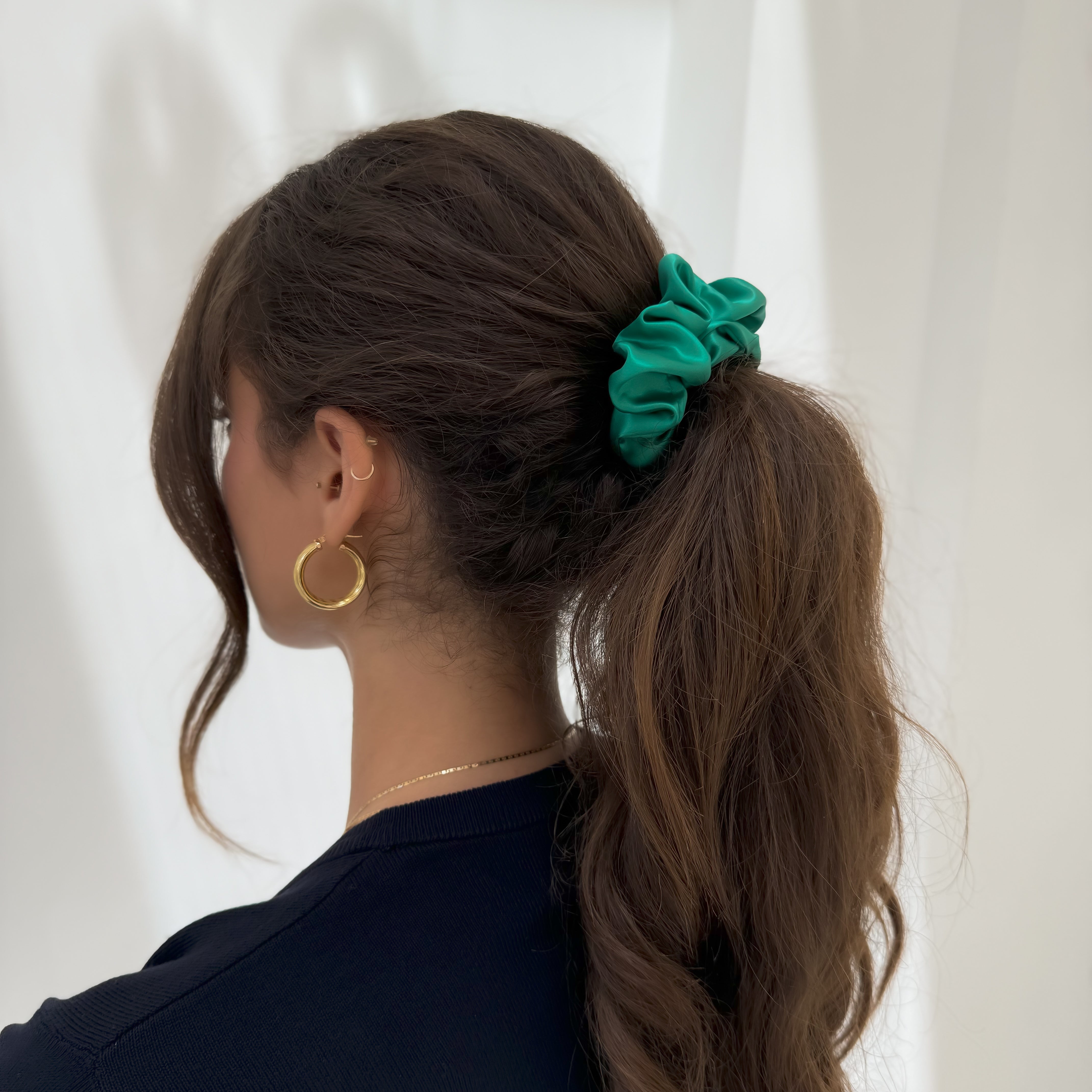 Indulge in timeless luxury with our Pure Silk Scrunchie, made from 100% organic mulberry silk. Thicker and more durable than regular silk, it offers a gentle, non-slip hold for all hair types, from fine strands to thick, textured hair. The premium durable elastic ensures a secure fit without easily stretching out, while the anti-breakage and anti-frizz properties of real silk protect your hair, preventing creasing, thinning, and pony-related headaches. Elevate your haircare routine with this elegant, long-lasting accessory.