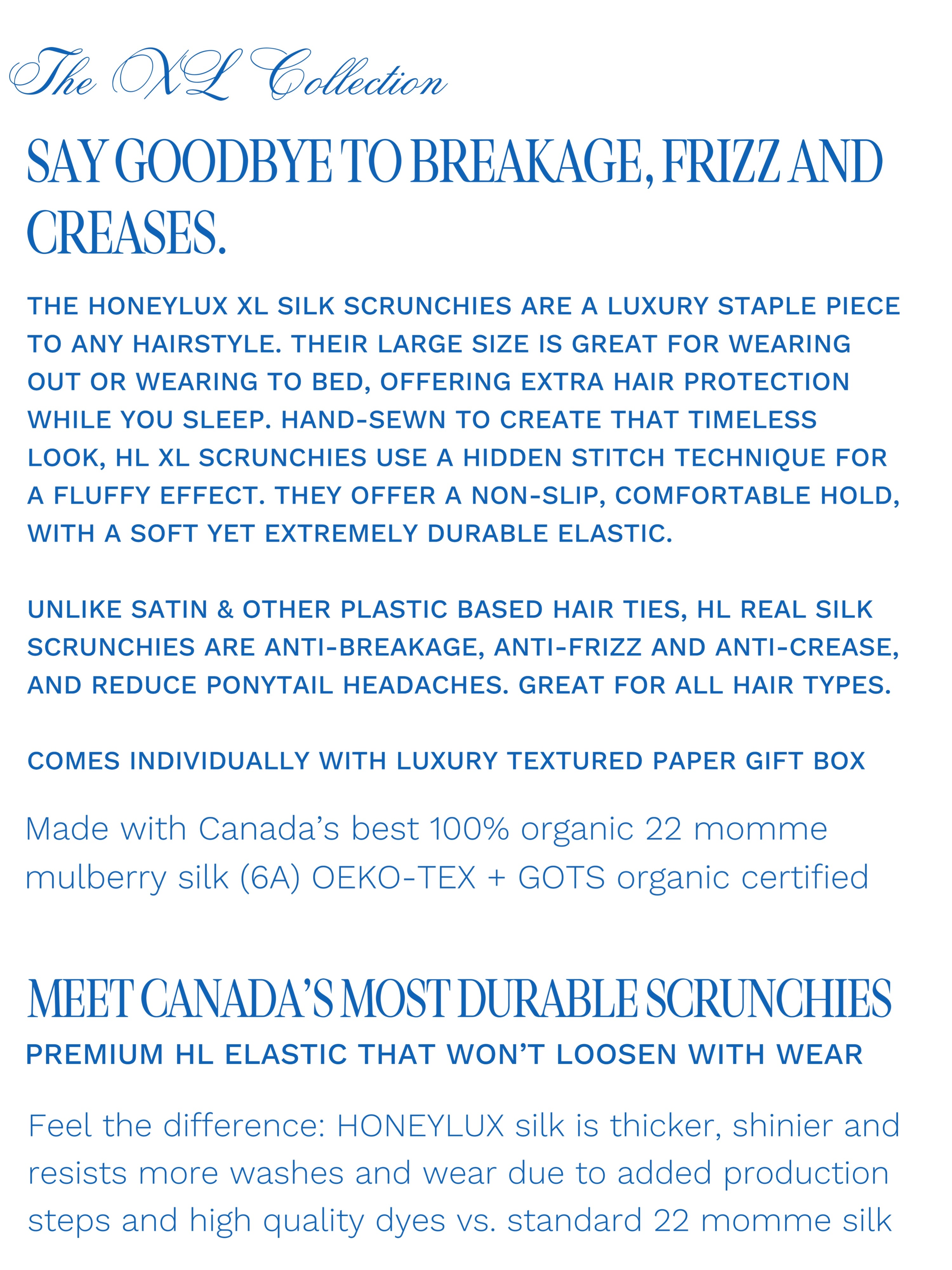 Absolutely! Our silk accessories are designed to be gentle and effective for all hair types. We've improved small details to ensure durability and functionality. For example, our scrunchies feature durable elastic that works perfectly on all hair types, from thin to thick, and they won’t slip out. Whether you have curly, straight, or textured hair, you can trust that our products will help reduce frizz and prevent breakage while looking and feeling luxurious. If you have any specific concerns, feel free to reach out via email at info@honeylux.co — we're here to help!