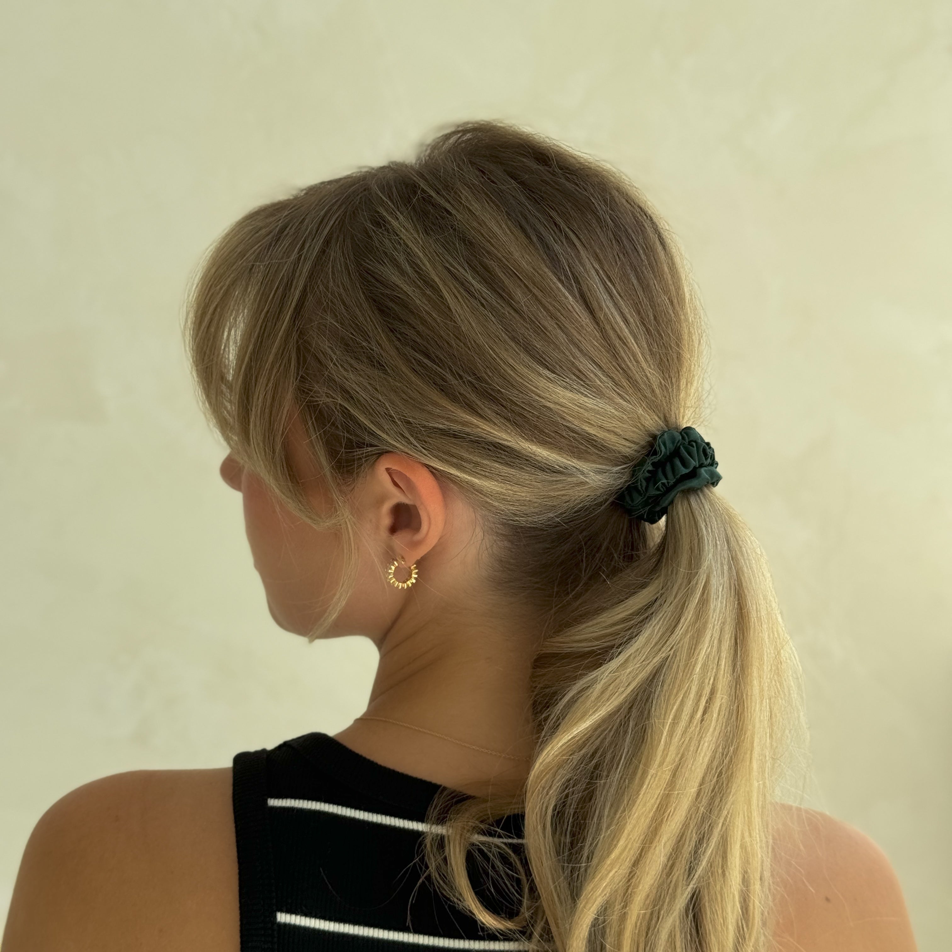 Indulge in timeless luxury with our Pure Silk Scrunchie, made from 100% organic mulberry silk. Thicker and more durable than regular silk, it offers a gentle, non-slip hold for all hair types, from fine strands to thick, textured hair. The premium durable elastic ensures a secure fit without easily stretching out, while the anti-breakage and anti-frizz properties of real silk protect your hair, preventing creasing, thinning, and pony-related headaches. Elevate your haircare routine with this elegant, long-lasting accessory.