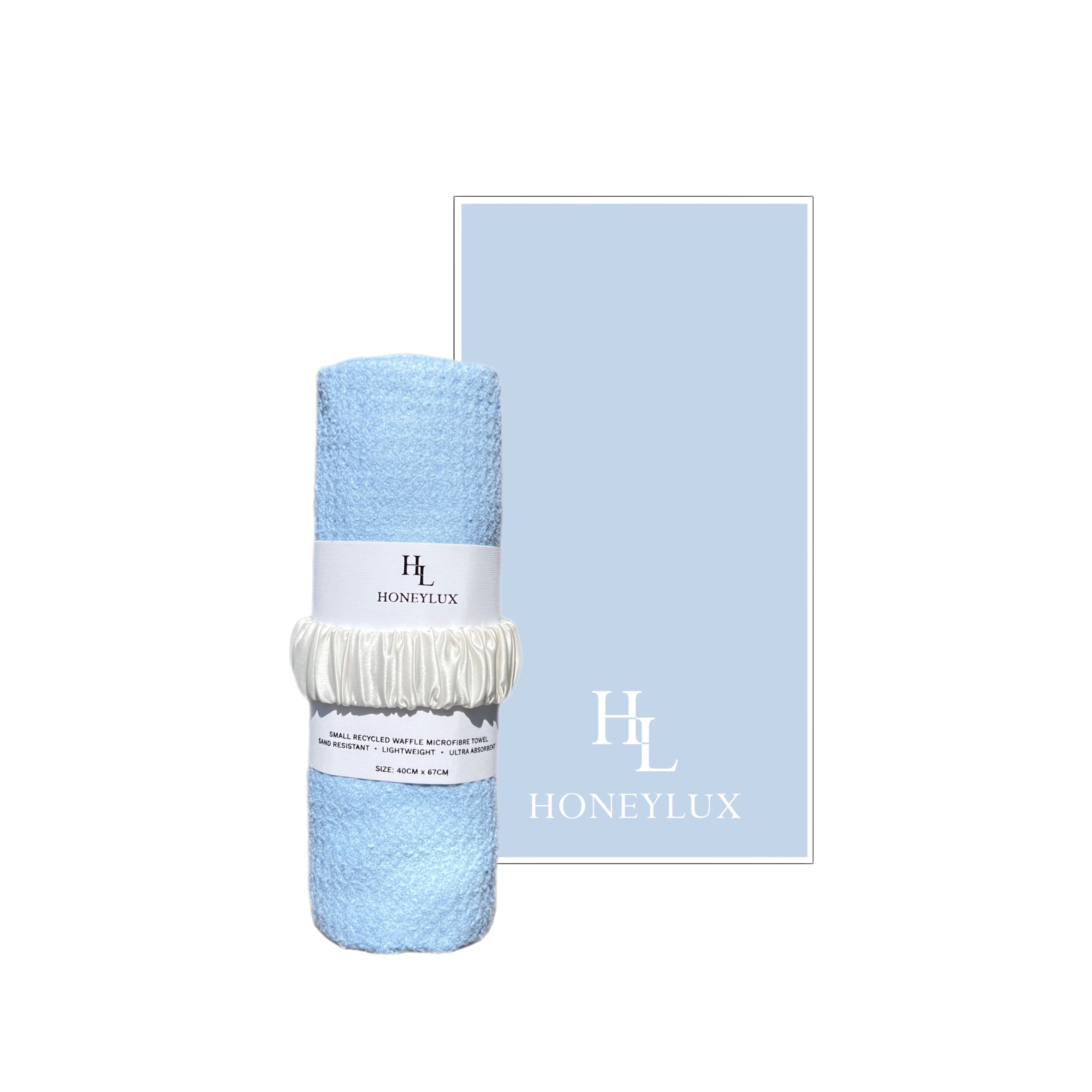 We’re proud to maintain our sustainability standards and use recycled microfibre. Each towel comes with a luxury silk band that can be used for travel or your hair!
