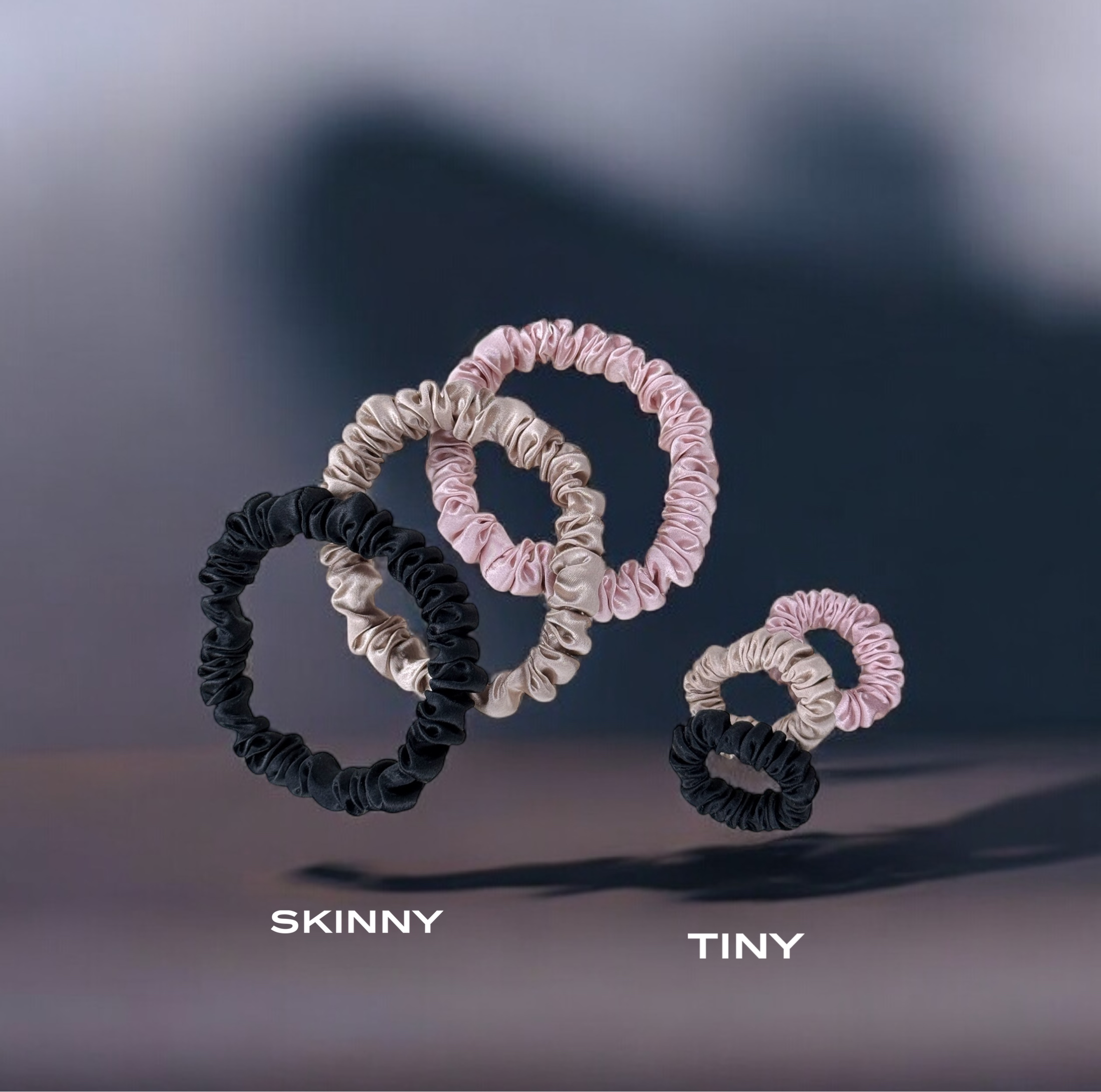 Meet Tinies, the newest addition to our pure 100% luxury silk hair accessories collection. These extra-small pure silk scrunchies are designed for the most delicate hairstyles—perfect for toddlers, children, braids, and bubble braids. Much smaller than our Skinny Silk Scrunchies, Tinies provide a secure yet gentle hold, and help prevent hair damage, reduce friction, and eliminate the creases caused by traditional hair ties.