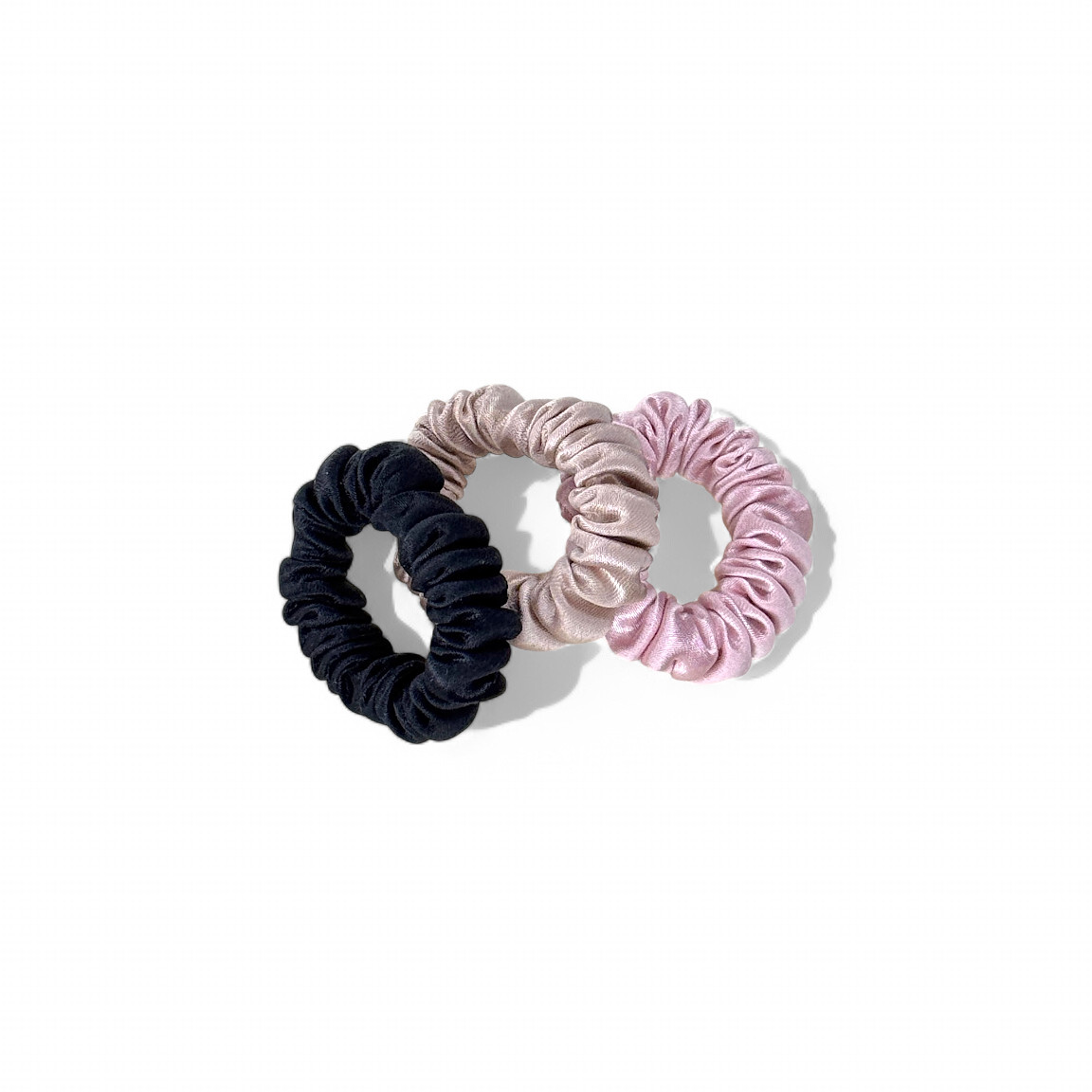 Tinies Silk Scrunchie Set - Black, Champagne, Pink